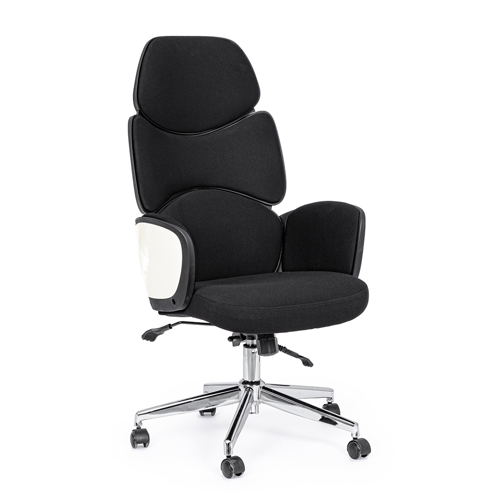 Draaibare en verstelbare bureaufauteuil in staal en kunststof verschillende afwerkingen.