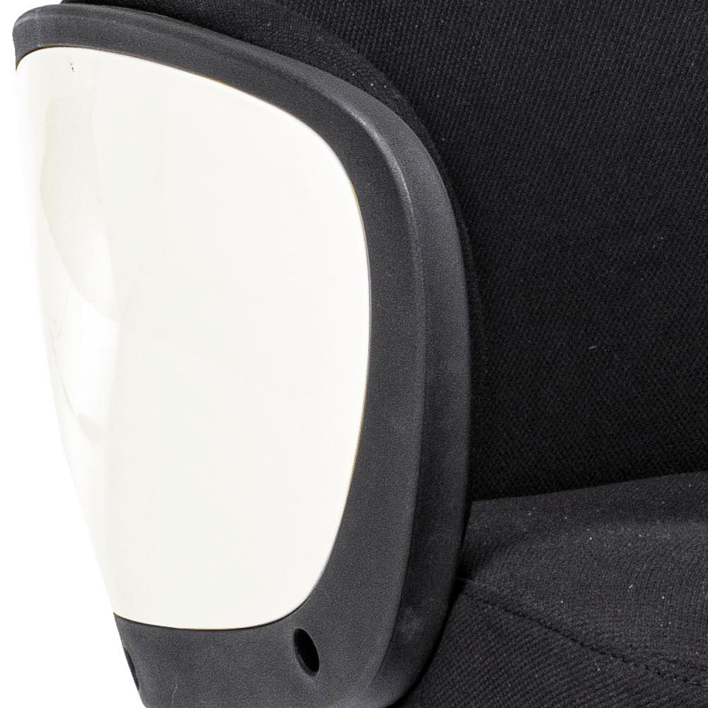 Lichaam en armleuningen in kunststof (polypropyleen). Bekleding van