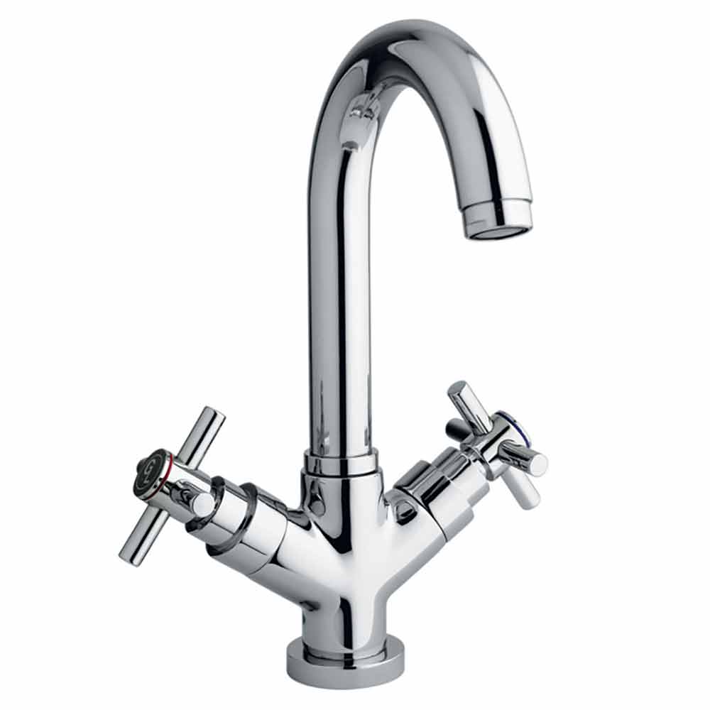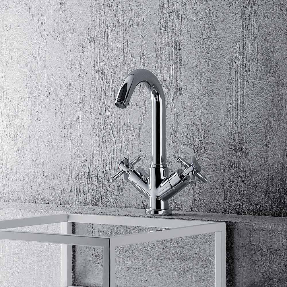 Eengatsmengkraan voor wastafel in verchroomd messing Made in Italy.