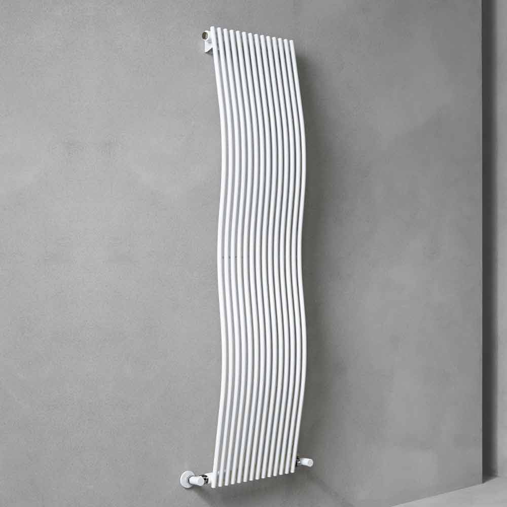 Wandradiator van gegolfd staal in verschillende maten en kleuren, gemaakt in Italië.