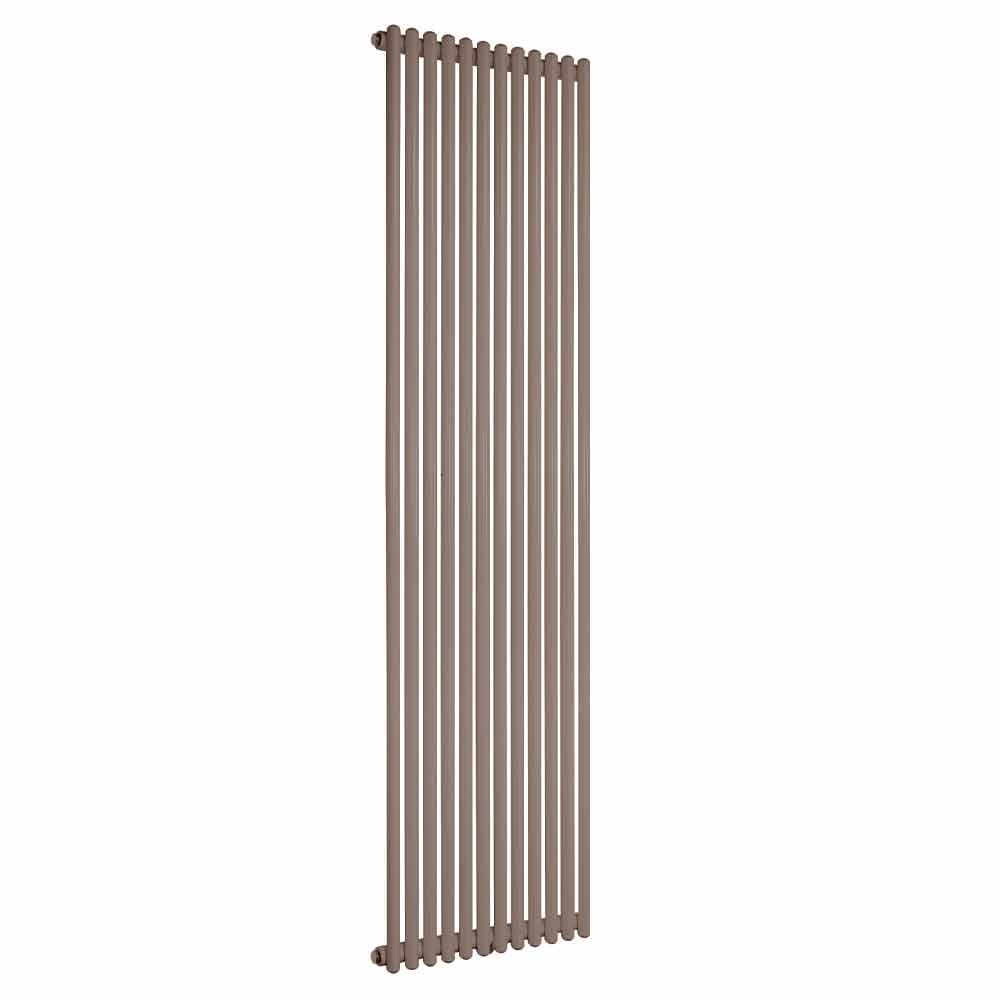 Deze hydraulische radiator heeft een buisvormig ontwerp dat bestaat uit verticale buizen met een diameter van 25 mm en spruitstukken met een diameter van 35 mm.