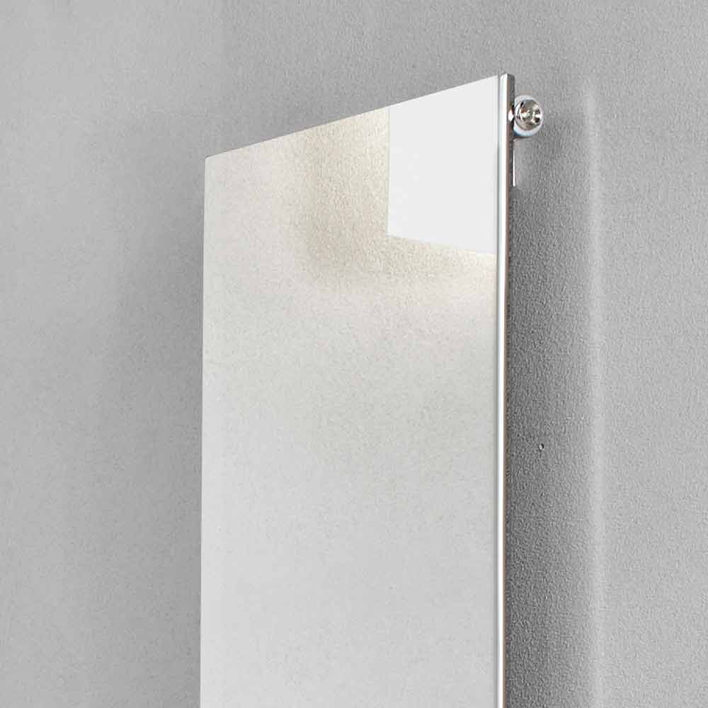 Verticale design wandradiator in reflex roestvrij staal met handdoekhouder gemaakt in Italië.