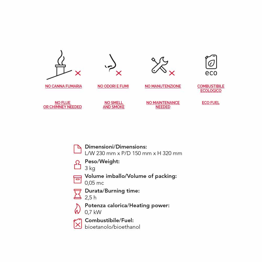 Verfijnde, elegante, sculpturale, de biocamino Curtis slaagt met zijn perfecte vorm en origineel naar een ontspannen en aangename warmte in omgevingen waar het wordt geplaatst, geschikt voor zowel interne en externe omgeving trekken.