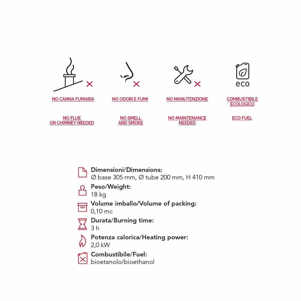 De voornaamste bijzonderheid van deze open haard ligt in de eigenschap van rook en dampen, in aanvulling op afvoerkanaal nodig. Ecologische open haard die geen onderhoud nodig heeft, zoals gevoed bio-ethanol, een hernieuwbare energiebron.