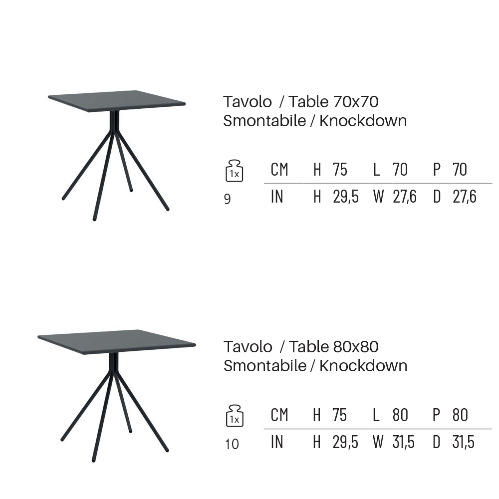 Vierkante tuintafel met gegalvaniseerde stalen constructie, 100% gemaakt in Italië