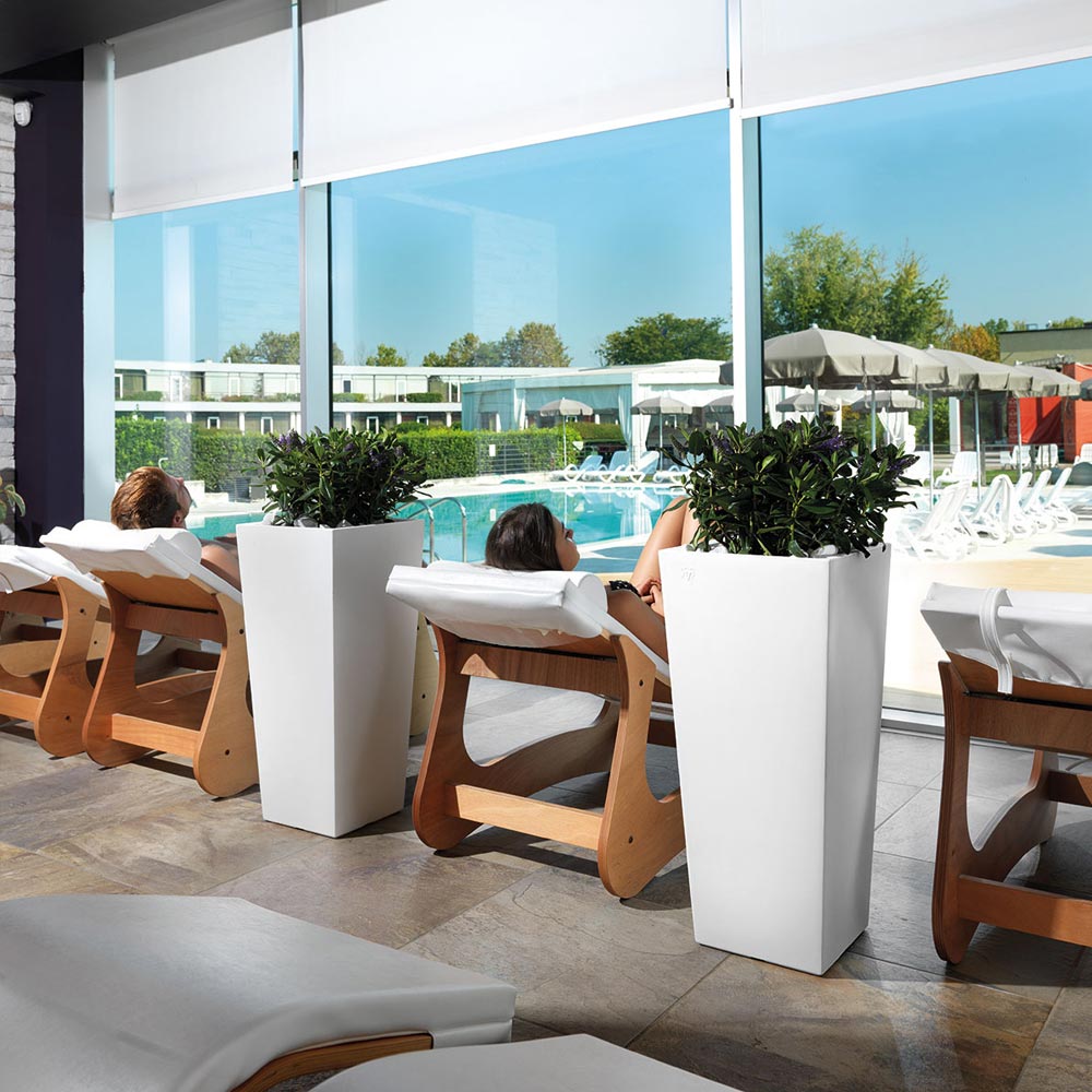 Deze buitenvaas is ontworpen om buitenruimtes te verrijken met een geweldige landschappelijke verfijning en is verkrijgbaar in 7 verschillende afwerkingen en 3 verschillende maten en hoogtes die een sterk gevoel van veelzijdigheid wekken en tegelijkertijd een elegante en extravagante sfeer creëren.
