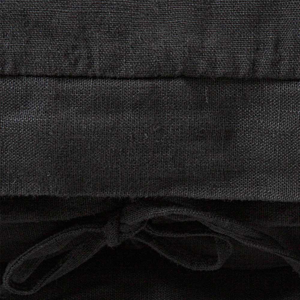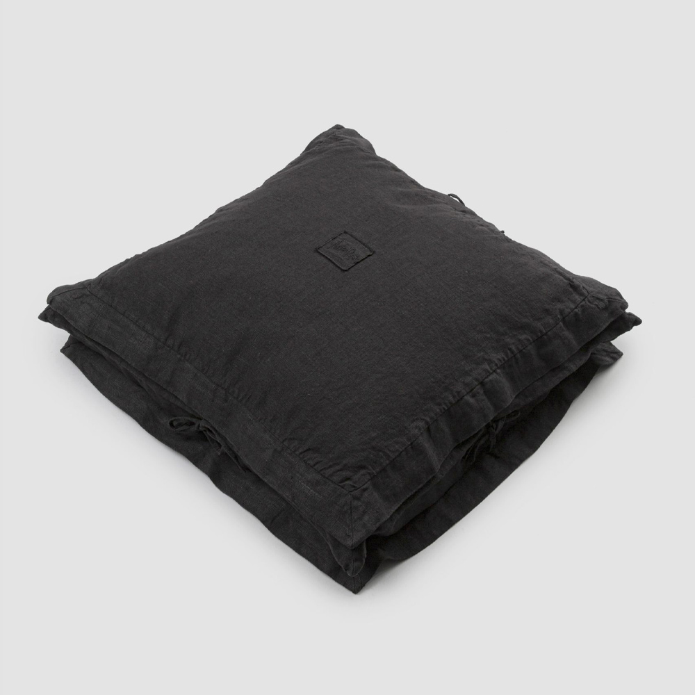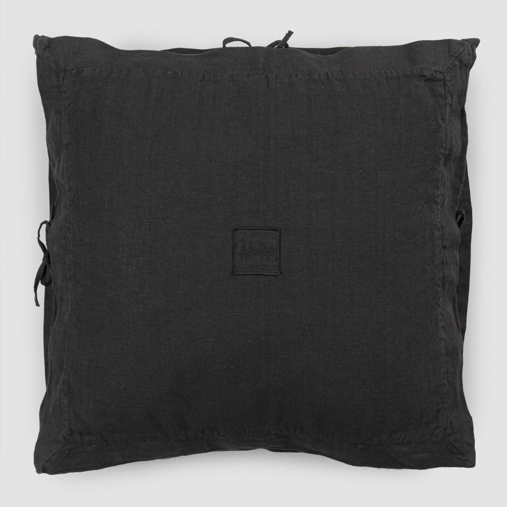 De waarde van traditie voegt zich bij de moderne levensstijl met deze zwarte zware linnen kussensloop met vierkante decoratie en banden aan de zijkanten.