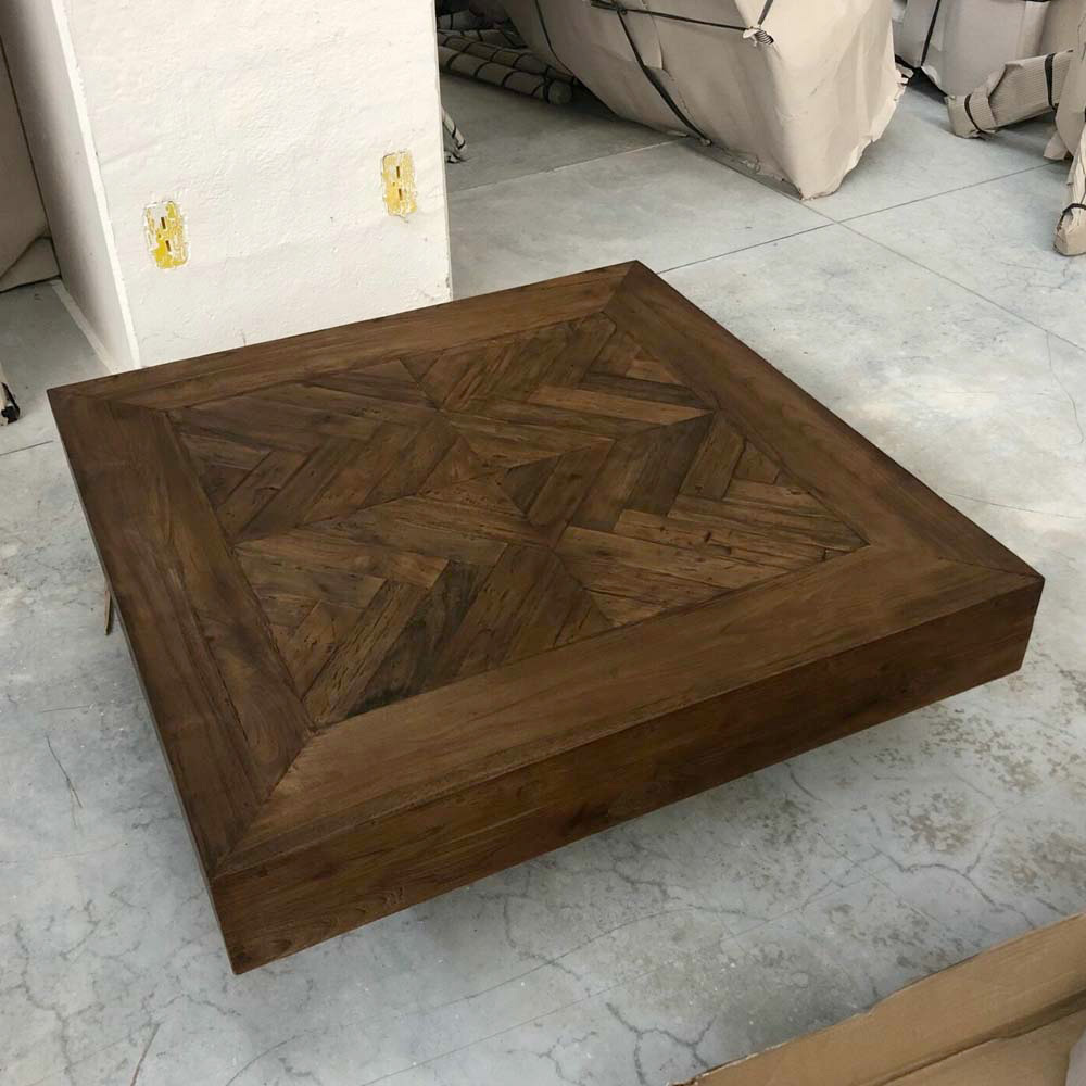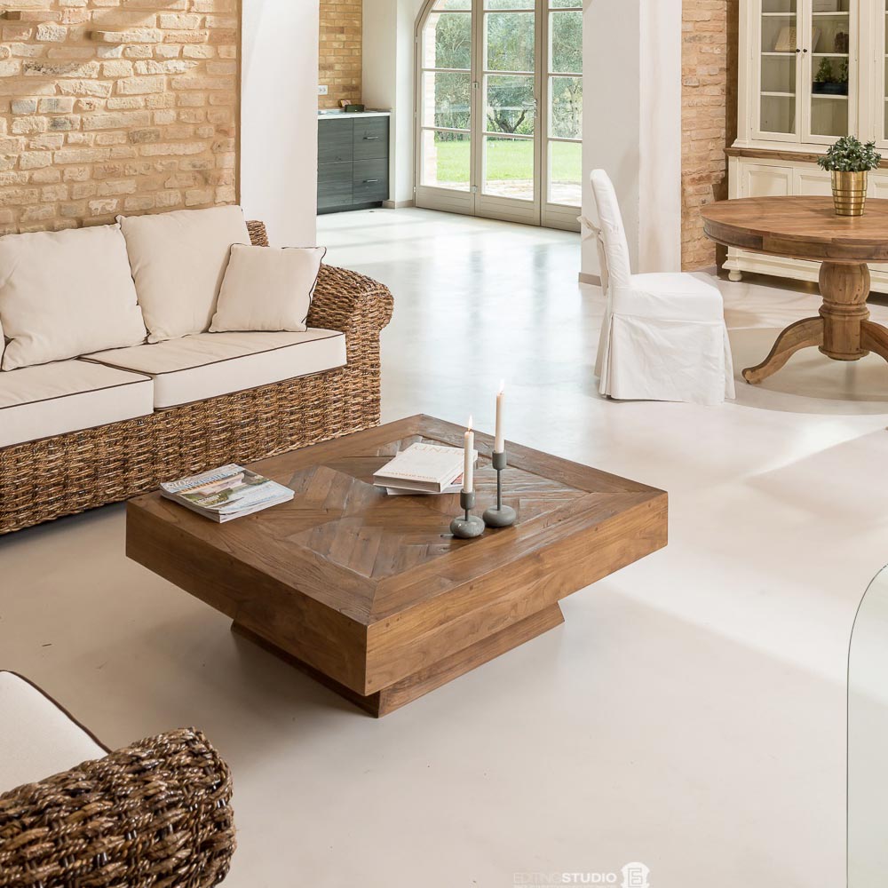 Vierkante salontafel gemaakt in gerecycled houtkleur koffie naturel .