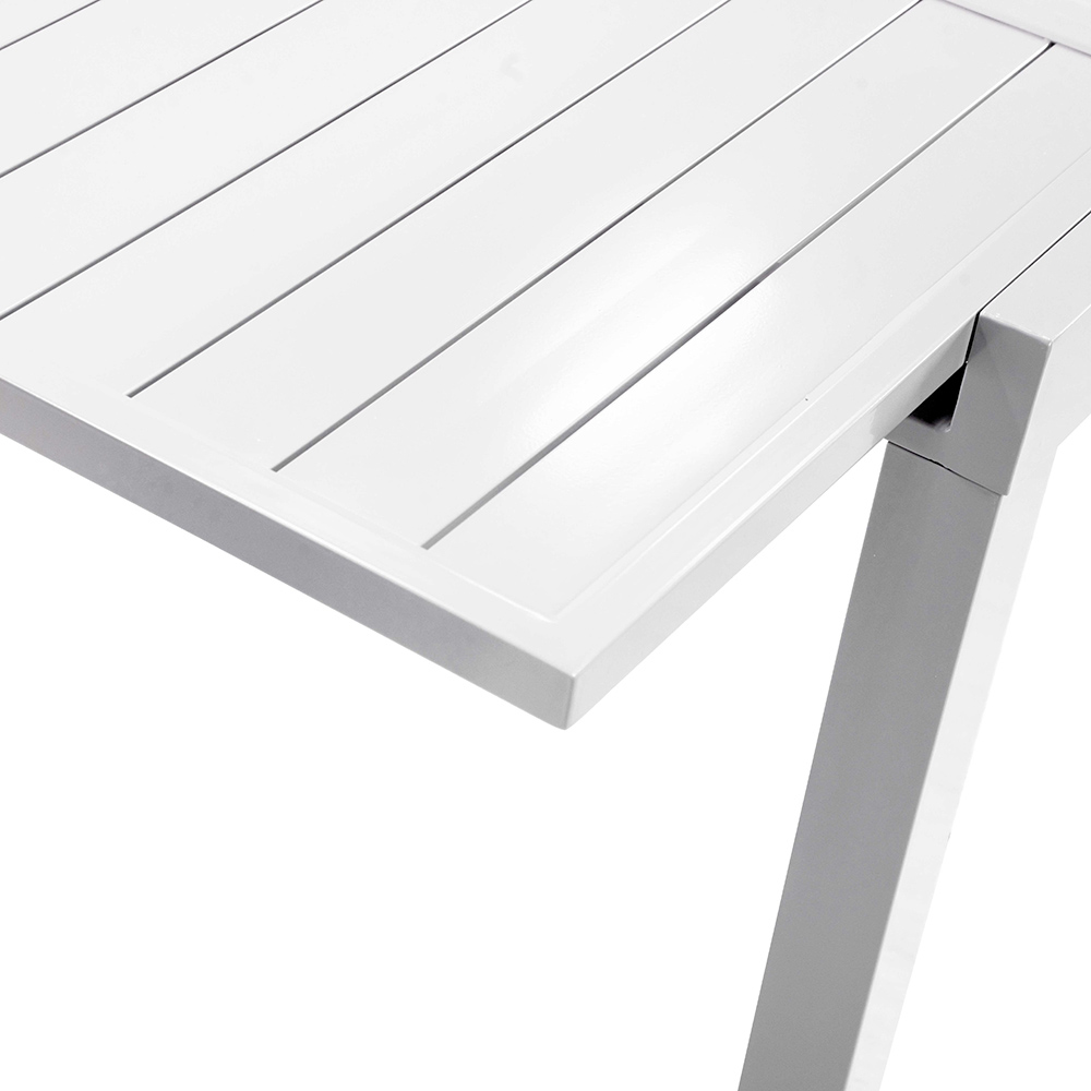 Dankzij het uitschuifbare mechanisme biedt de tafel de flexibiliteit om gemakkelijk extra gasten te ontvangen, waardoor het perfect is voor diners, recepties of gewoon ontspannen in de buitenlucht. Het aluminium frame garandeert een lange duurzaamheid en weerstand tegen de elementen, zodat je investering even praktisch als mooi is om naar te kijken.