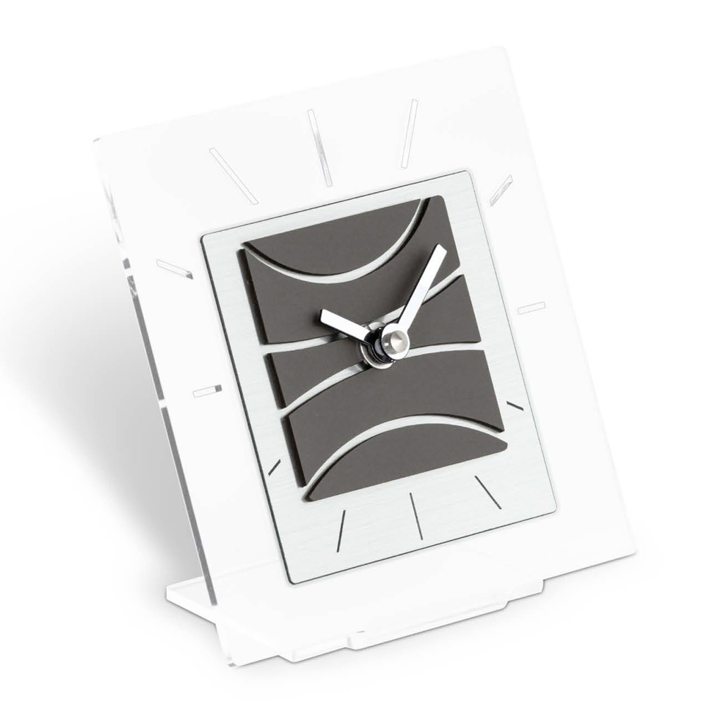 Ideaal voor degenen die voorwerpen waarderen die vorm en functie combineren met elegantie . Deze tafelklok is niet alleen een tijdmeter, maar ook een meubelaccessoire dat een verfijnde smaak uitdrukt. Perfect voor het verfraaien van bureaus, planken of salontafels, het vertegenwoordigt een symbool van stijl en kwaliteitsvol vakmanschap .