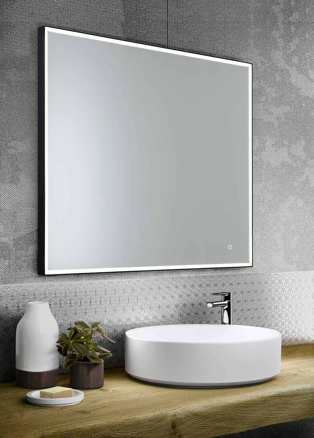 gesatineerd glasprofiel , heeft deze spiegel een omkeerbare montage en de mogelijkheid om te kiezen tussen twee soorten licht, een warmer en een natuurlijker.