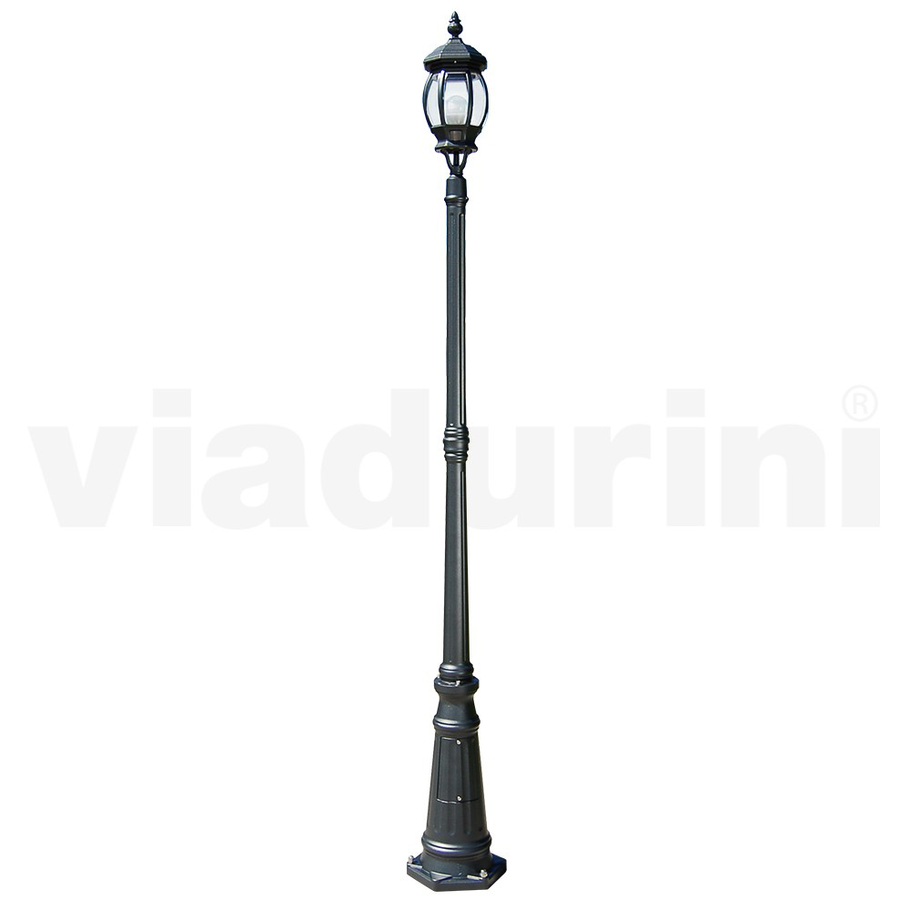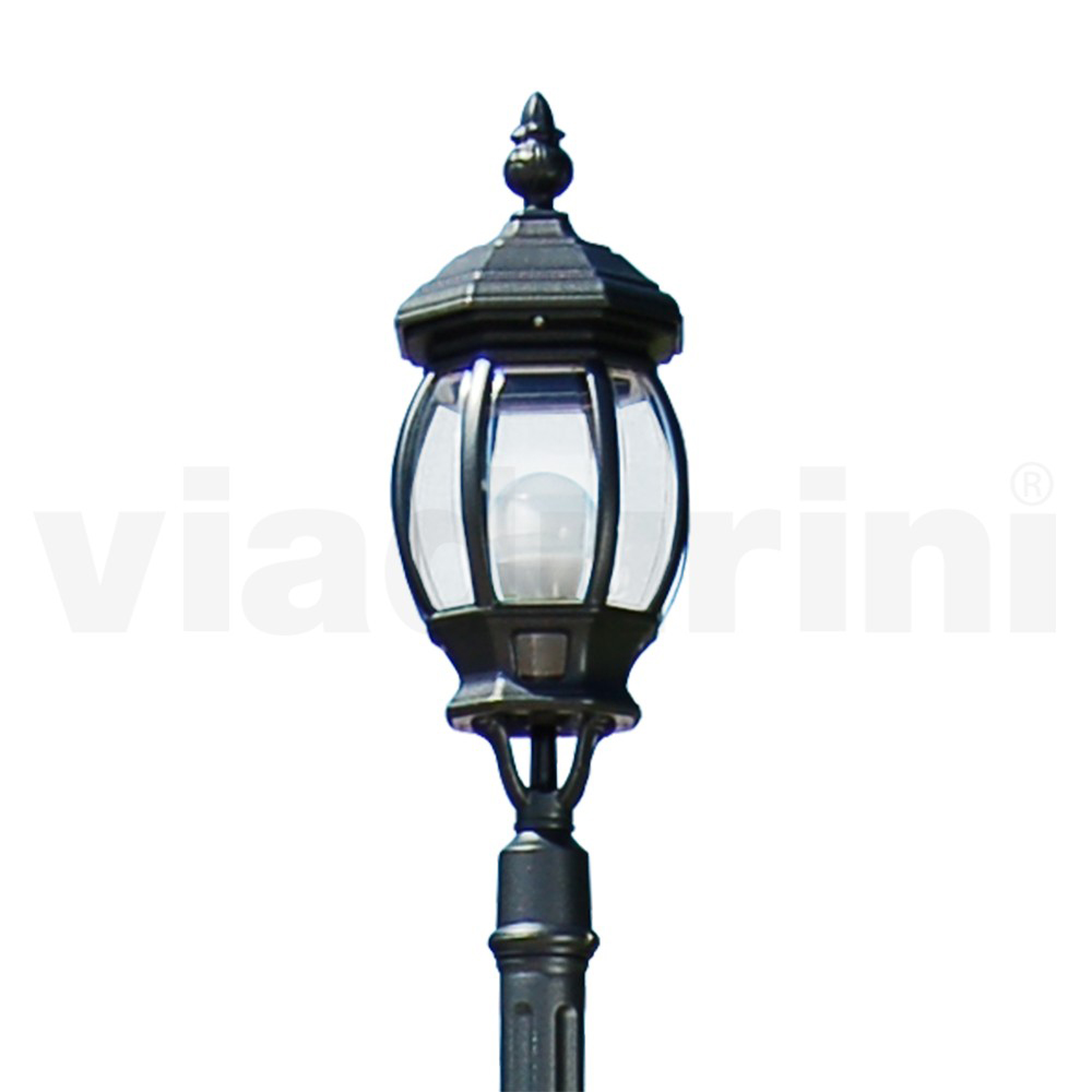 Lantaarnpaal in vintage stijl van aluminium en transparant polycarbonaat Made in Italy.