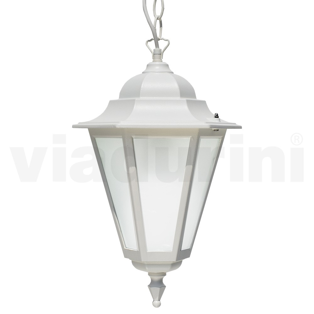 Vintage buitenlantaarn van aluminium met glazen diffuser Made in Italy.