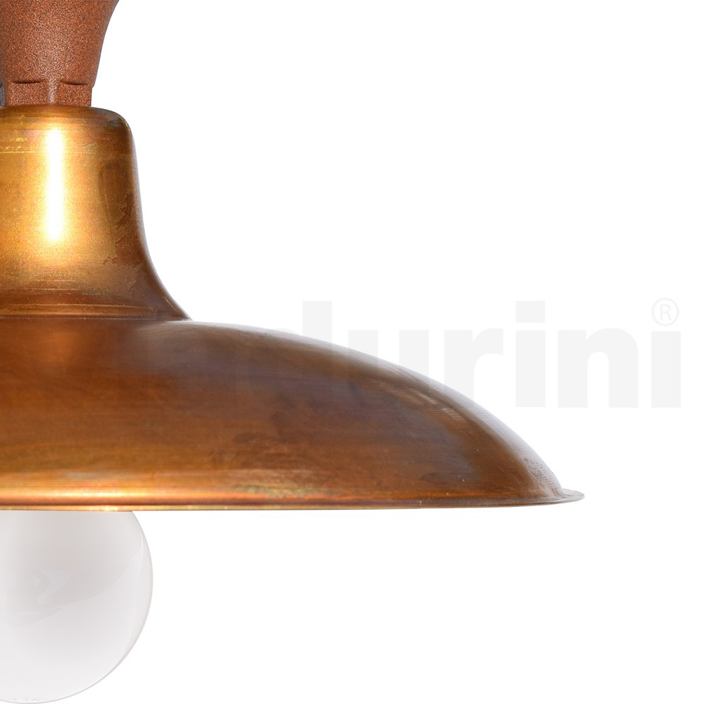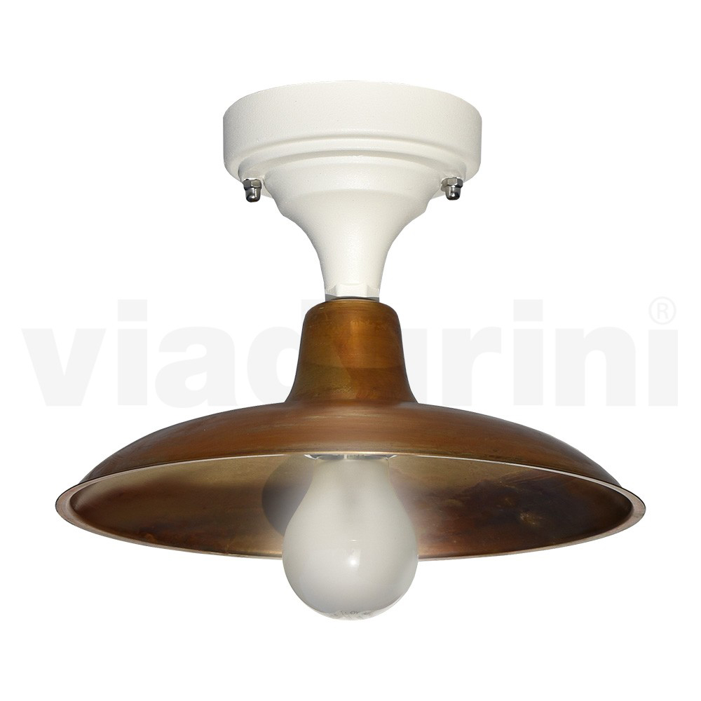 Vintage aluminium buitenplafondlamp met messing diffuser Made in Italy.