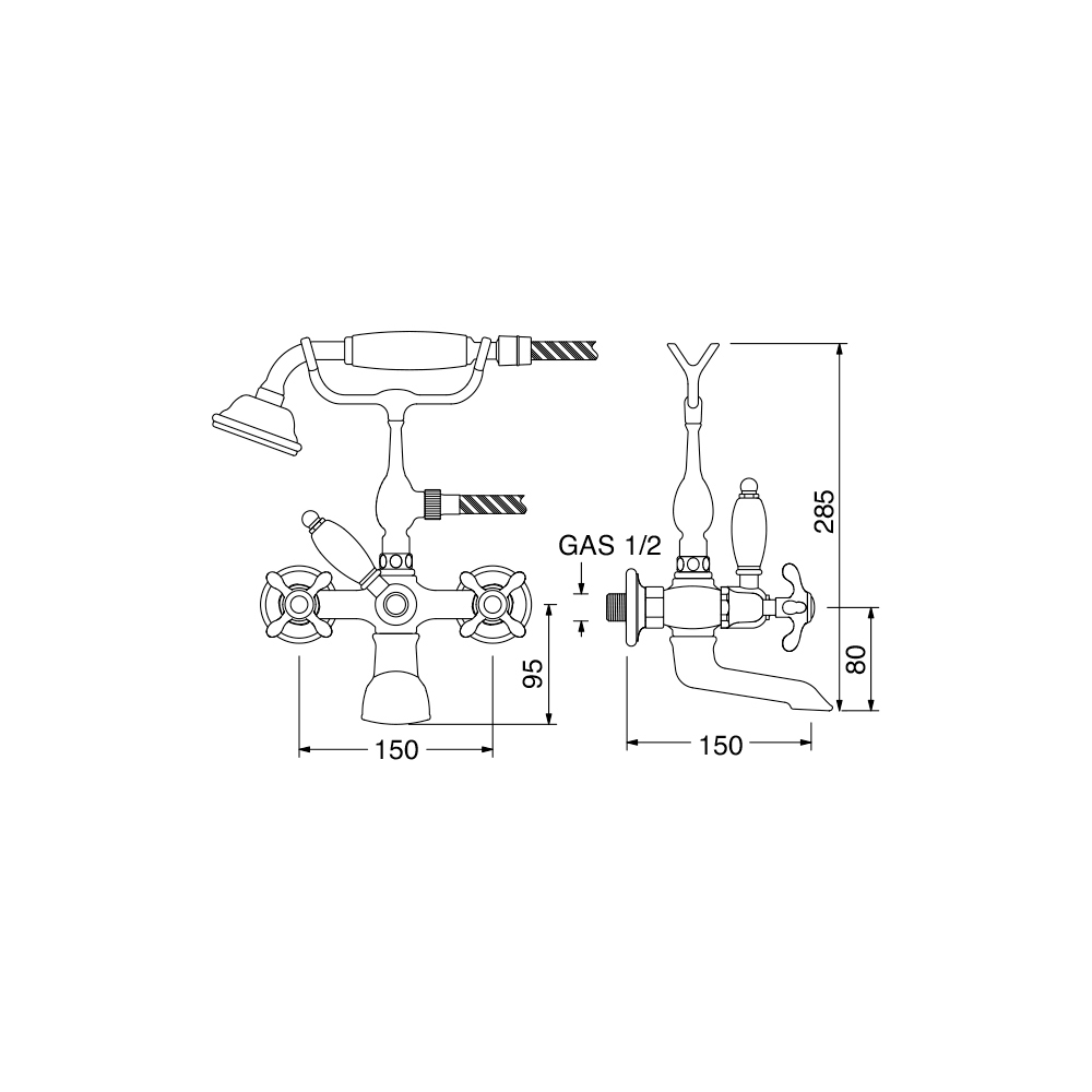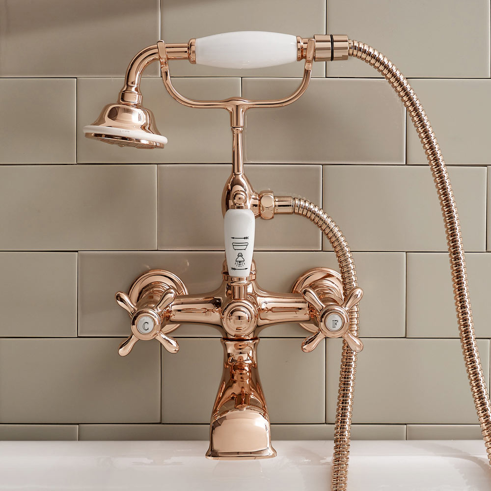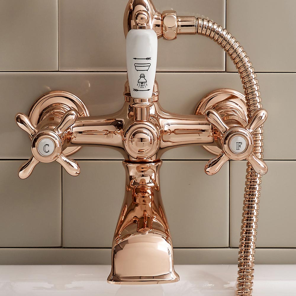 Badcombinatie met handdouche gemaakt van Klarisa messing, made in Italy.