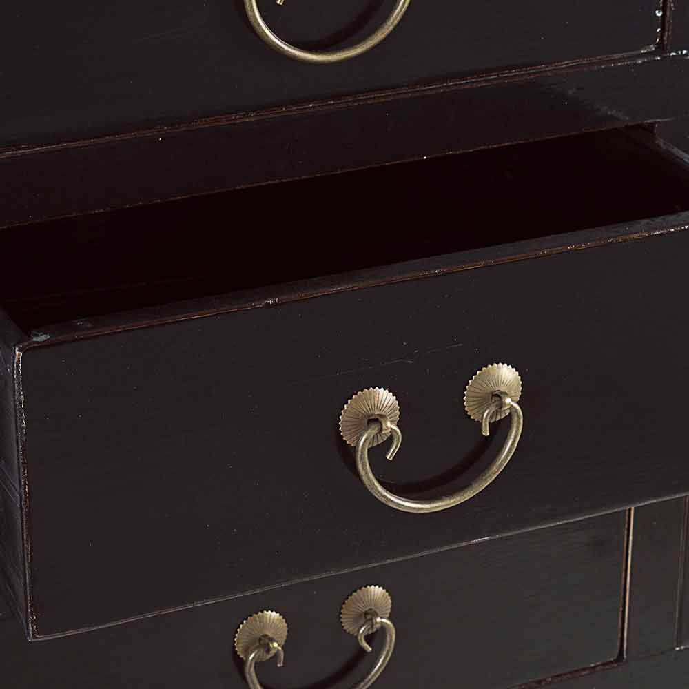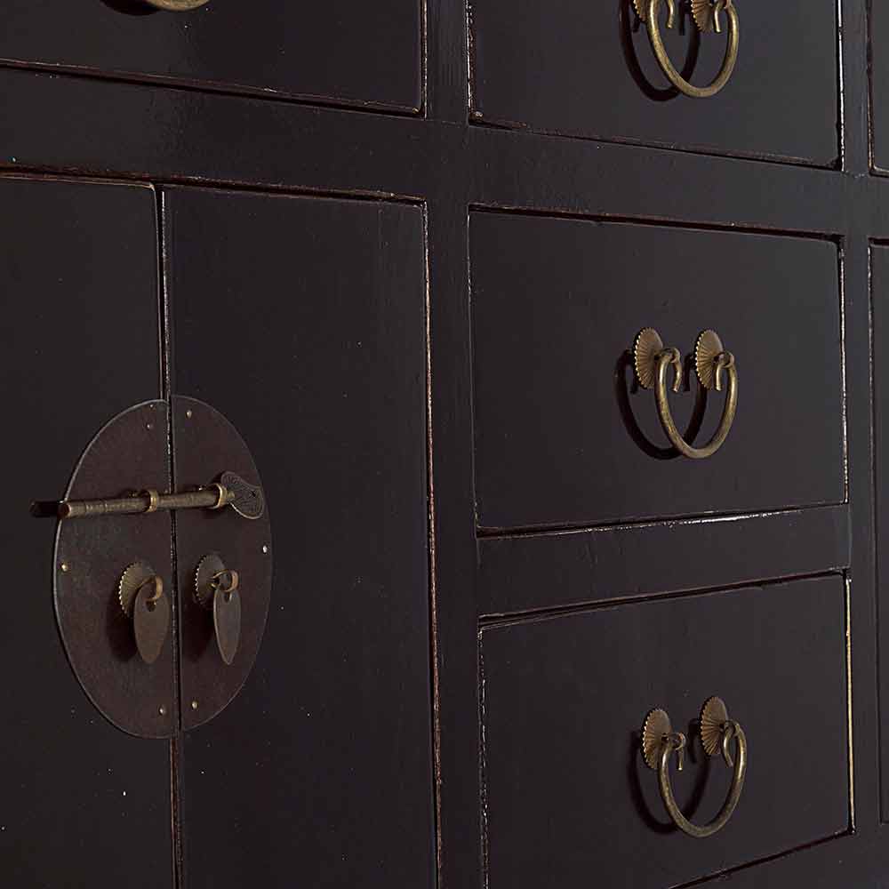 Met 5 laden en 4 deuren voor een geometrische en regelmatige compositie , vervolledigen de elegante koperen handgrepen het tafereel , waardoor een perfecte vintage stijl ontstaat, die luxe en elegantie kan geven aan elke omgeving.