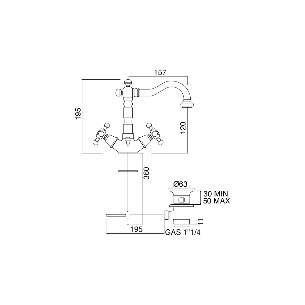 Eéngats wastafelmengkraan met vintage design in messing Ursula, gemaakt in Italië.