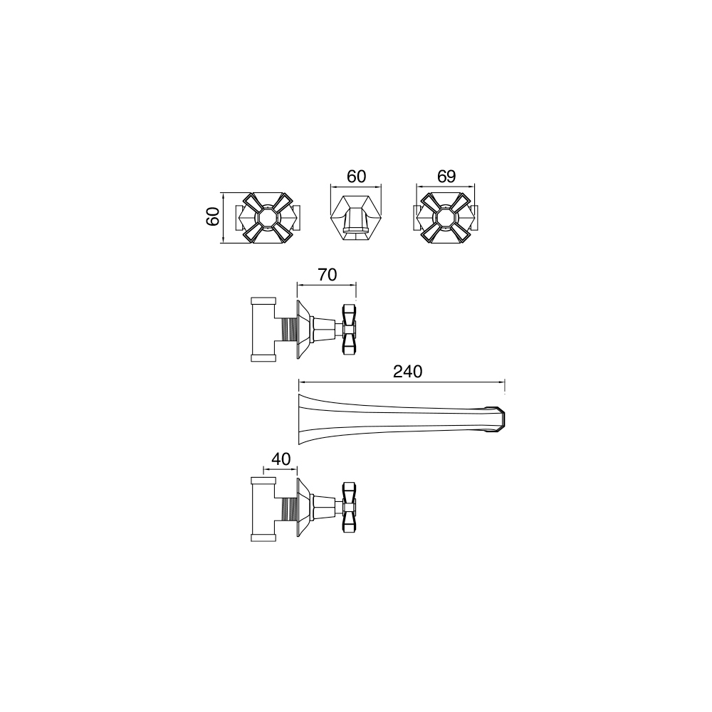 Silvana model messing wandgemonteerde gootsteen- of wastafelkraan, gemaakt in Italië.