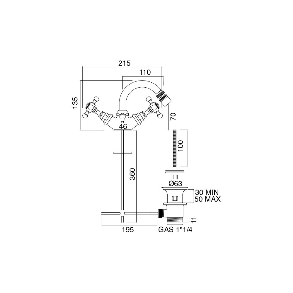 Mono-hole bidetmengkraan van messing met vintage design, gemaakt in Italië, Elisea.
