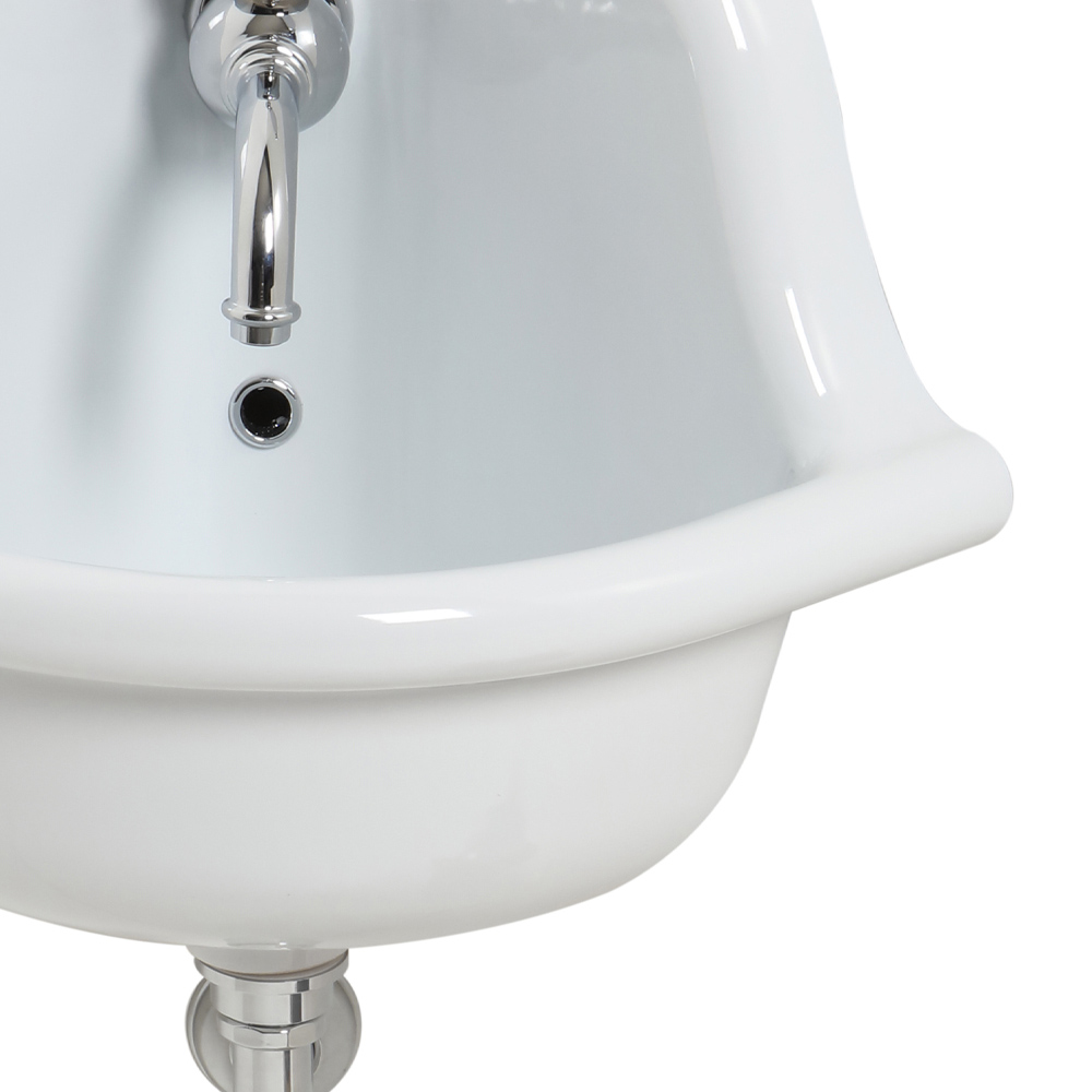 NB: kraan, afvoer en sifon exclusief. De wastafel wordt geleverd met een kraangat.
