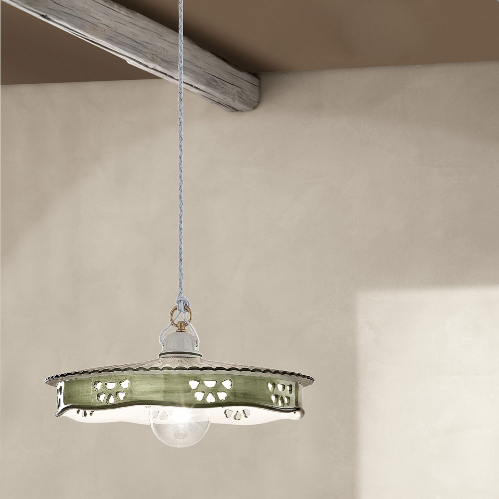 Vintage keramiek en handgemaakte ijzeren hanglamp - Alessandria