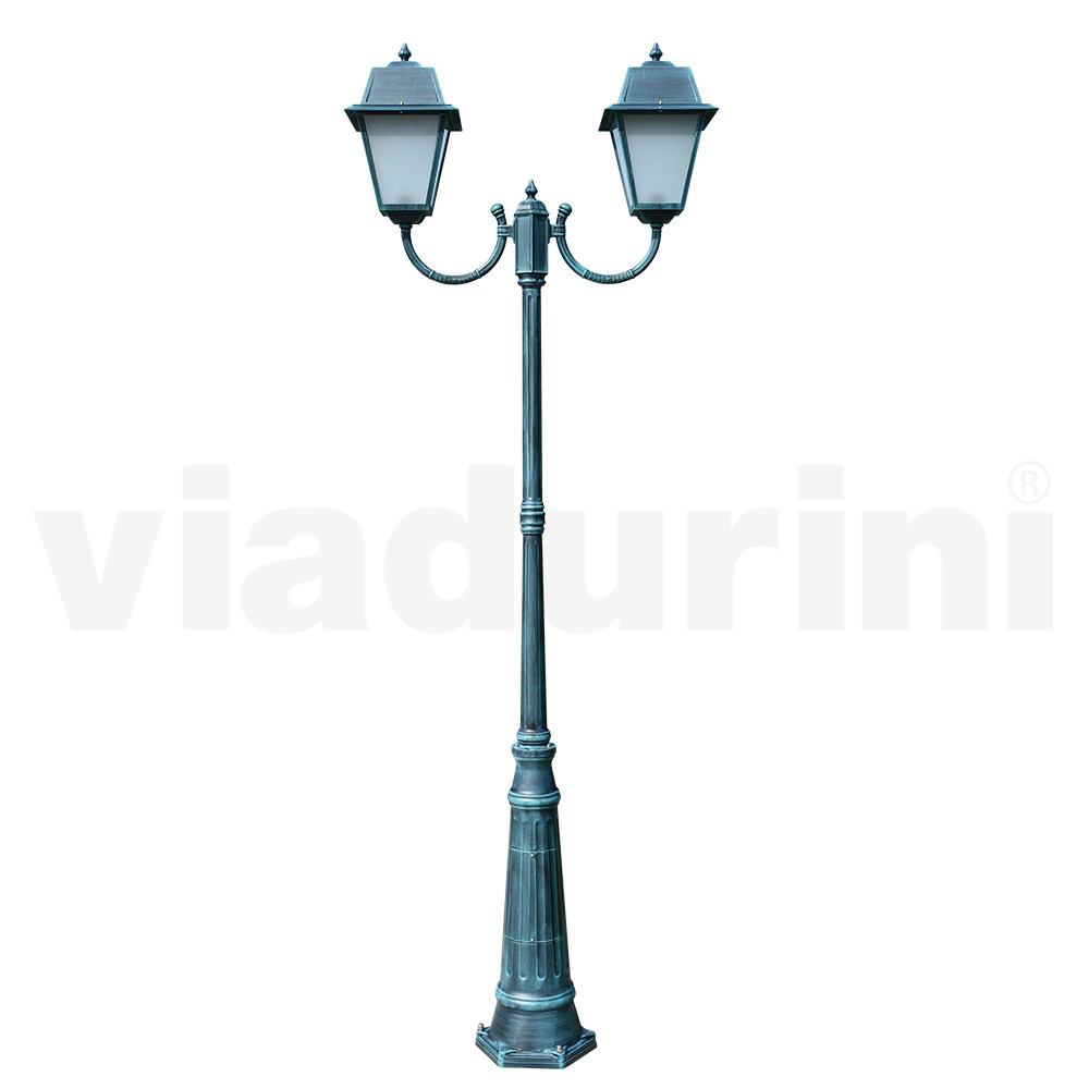 Aluminium lantaarnpaal met gezandstraalde glazen diffuser Gemaakt in Italië, vintage stijl.