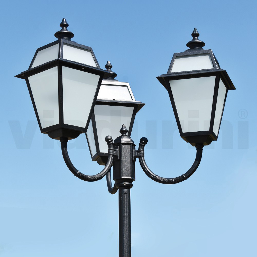 3-lichts tuinlamp van aluminium en glas Made in Italy.