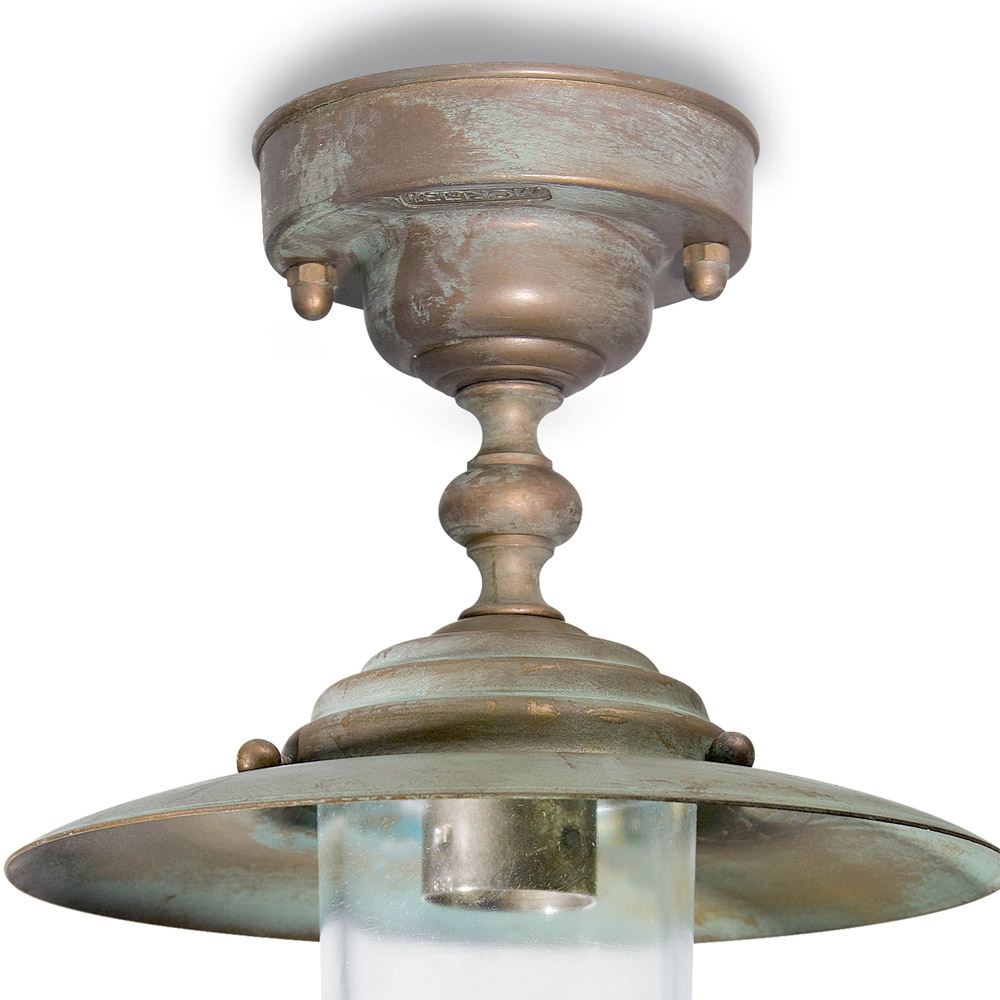Authentiek en tijdloos, deze buitenplafondlamp roept de charme van traditionele lantaarns op, maar dan in een elegant nieuw jasje. De handgemaakte messing structuur valt op door de antieke afwerking , die de textuur van het metaal benadrukt en een verfijnde, doorleefde uitstraling geeft.