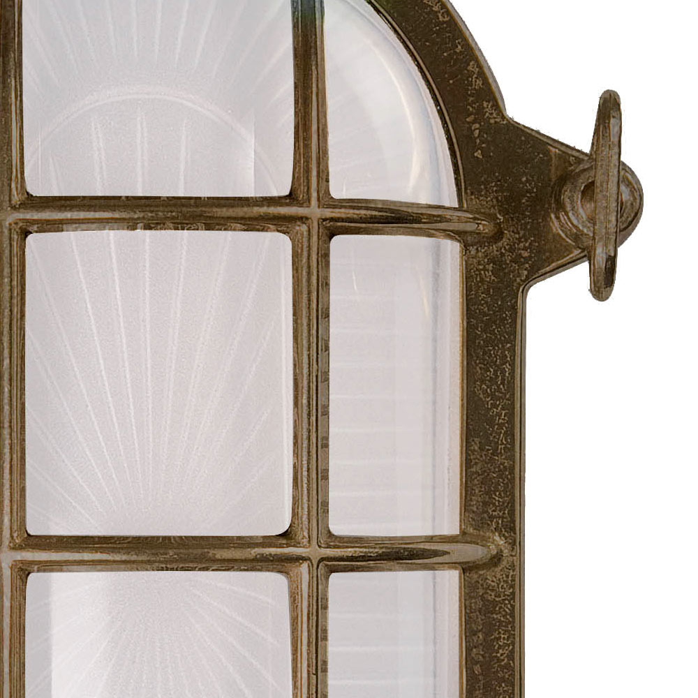 Met een sterk nautisch karakter en een elegante industriële uitstraling is deze buitenwandlamp een verlichtingsoplossing die ontworpen is om buitenruimtes te verfraaien met persoonlijkheid en esthetische robuustheid . De handgemaakte messing structuur straalt een authentieke en tijdloze charme uit, ideaal voor verfijnde architectonische omgevingen.