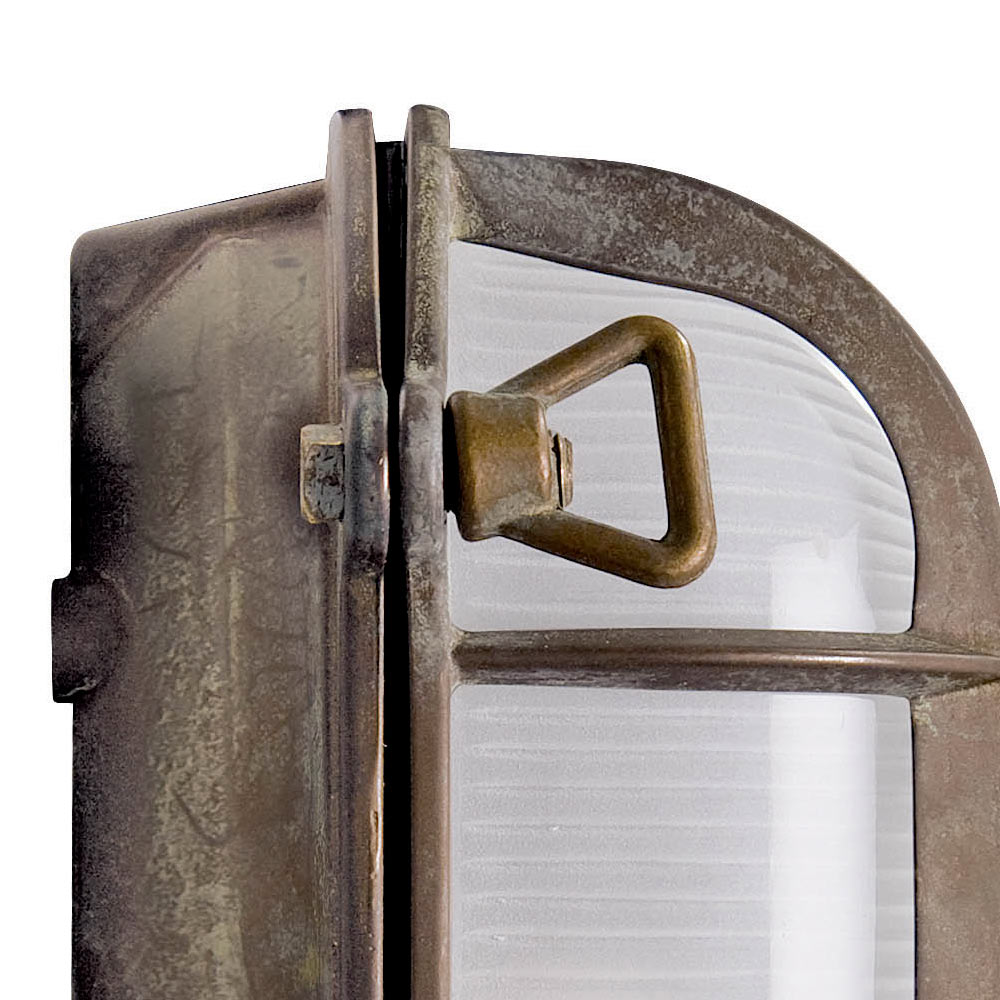 Met een sterk nautisch karakter en een elegante industriële uitstraling is deze buitenwandlamp een verlichtingsoplossing die ontworpen is om buitenruimtes te verfraaien met persoonlijkheid en esthetische robuustheid . De handgemaakte messing structuur straalt een authentieke en tijdloze charme uit, ideaal voor verfijnde architectonische omgevingen.
