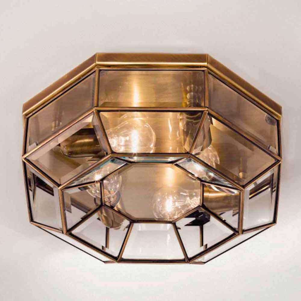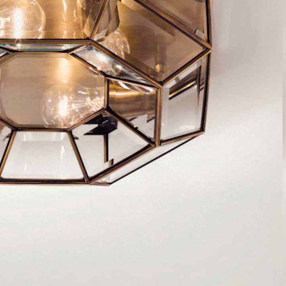 Plafondlamp met 4 achthoekige lampjes in messing en glas van handgemaakt design made in Italy.