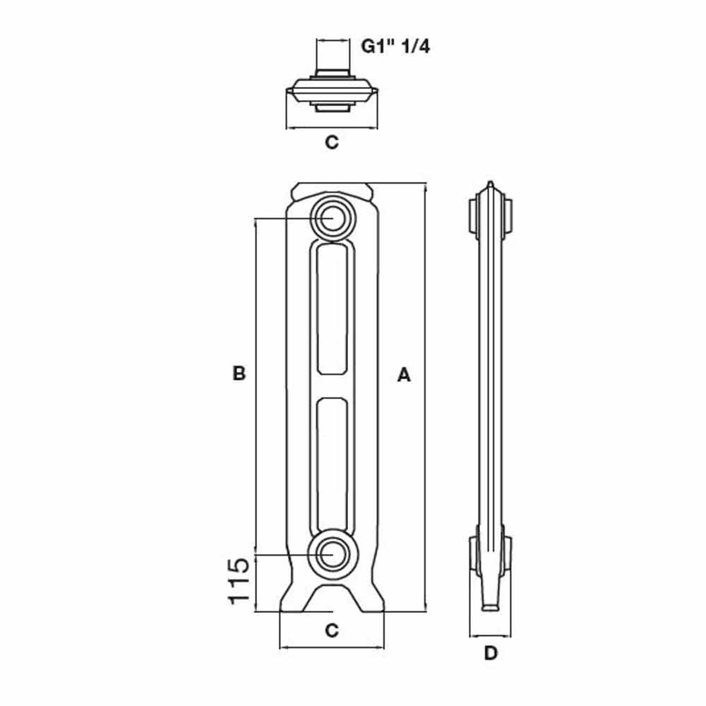 Het is een gietijzeren radiator geschikt voor klassieke omgevingen, bepaald door waarden als totale kwaliteit, topservice, het streven naar een altijd innovatief maar functioneel ontwerp en respect voor het milieu, niet alleen bij het ontwikkelen van producten met een lage milieu-impact maar ook voor met betrekking tot de productiefase.