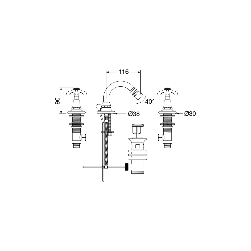 bidetkraan 3-gats met afvoer.
