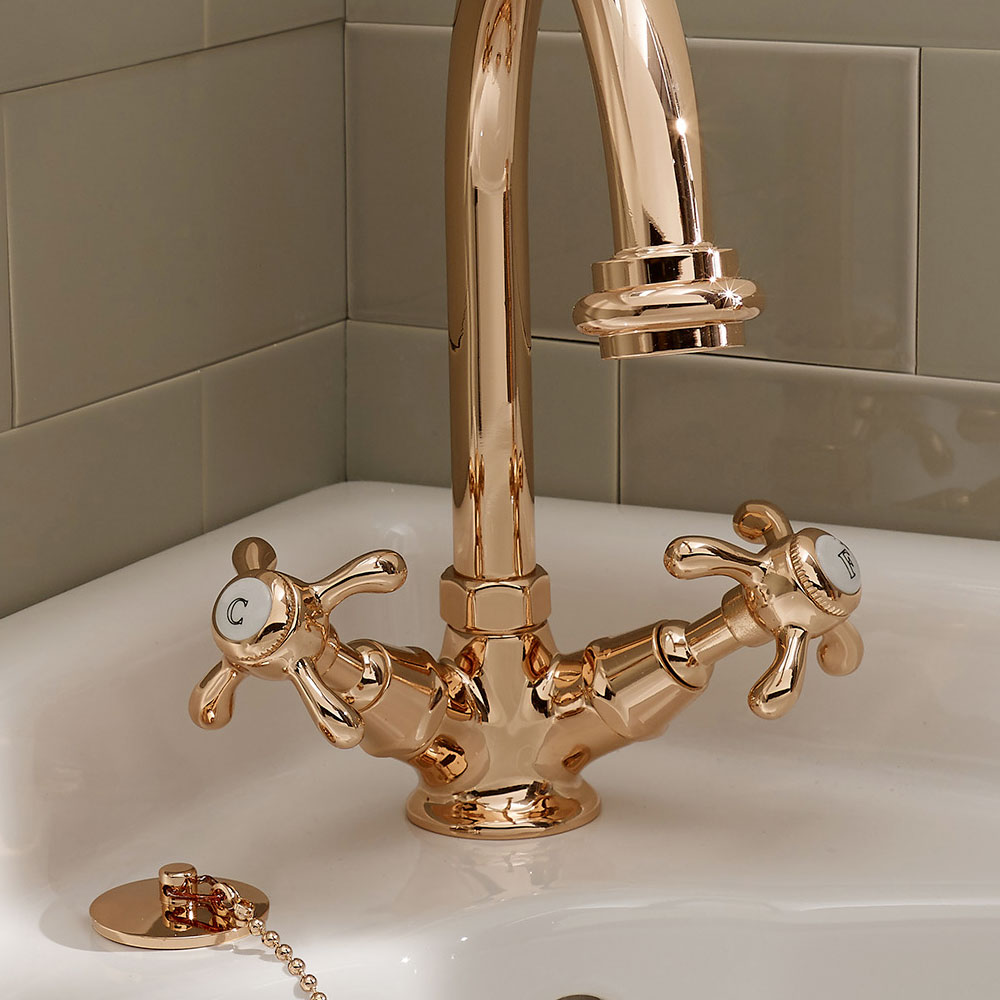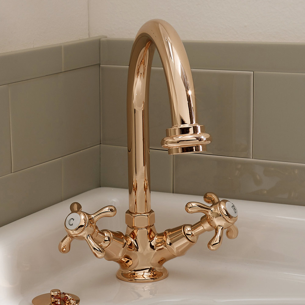 Eéngats wastafelmengkraan gemaakt in Italië vintage design messing, model Klarisa.