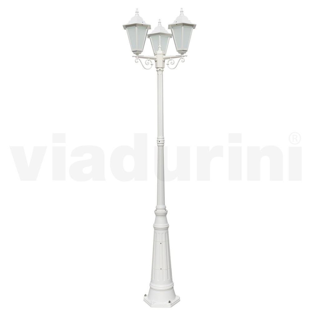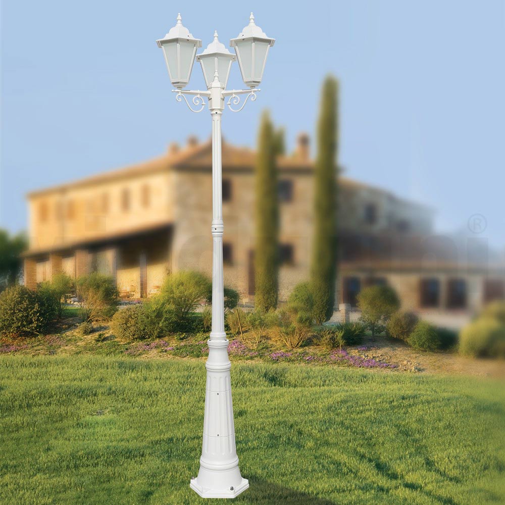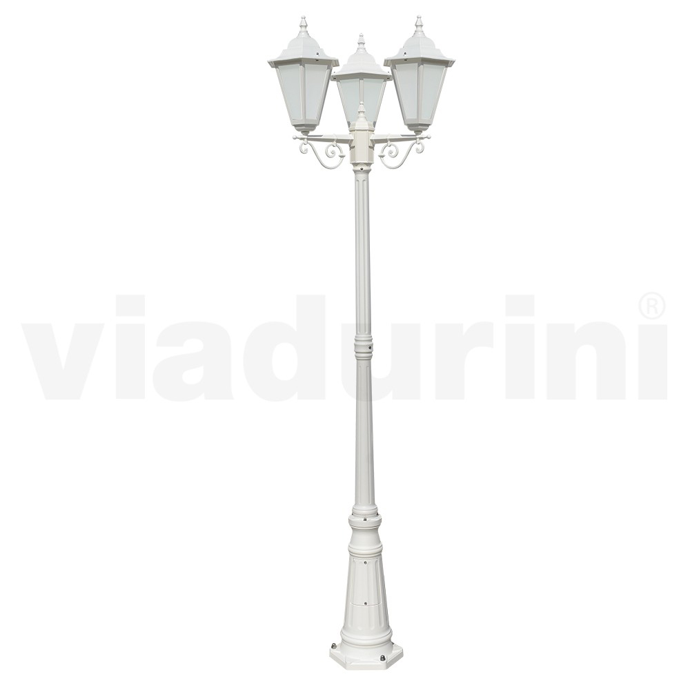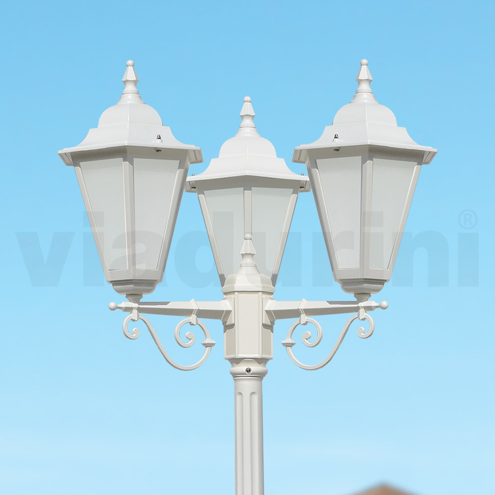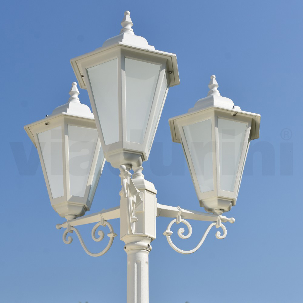3-lichts aluminium straatlantaarn met glazen diffuser Made in Italy, vintage stijl.