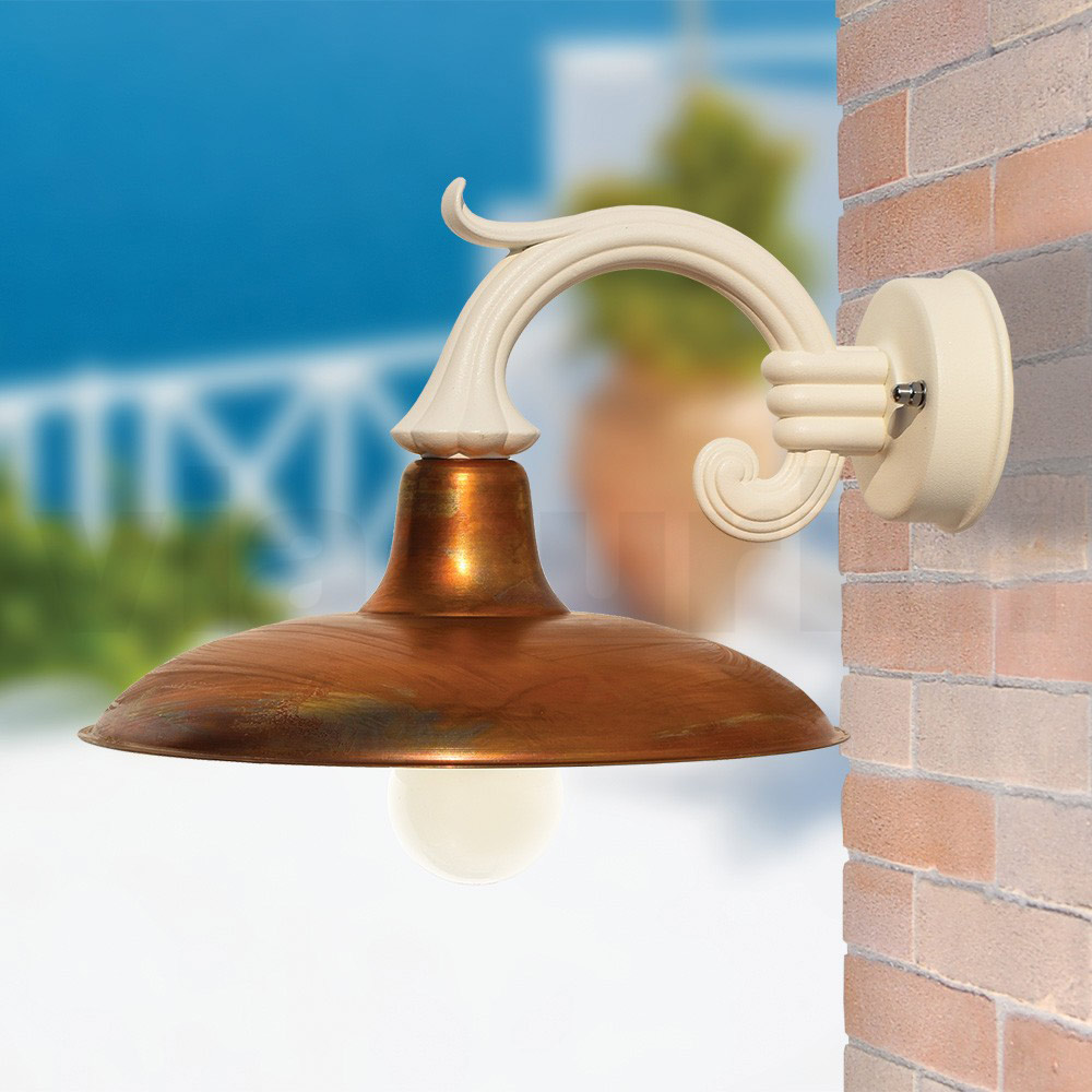 Buitenwandlamp in vintage stijl in aluminium en messing Made in Italy.