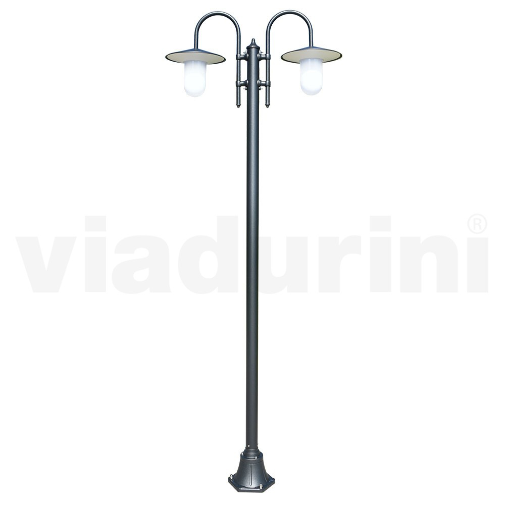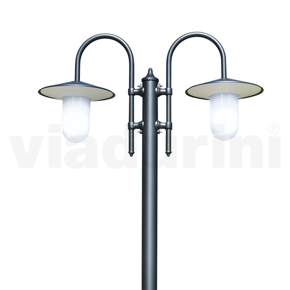 Vintage tuinlamp met 2 lampen en aluminium structuur Made in Italy.