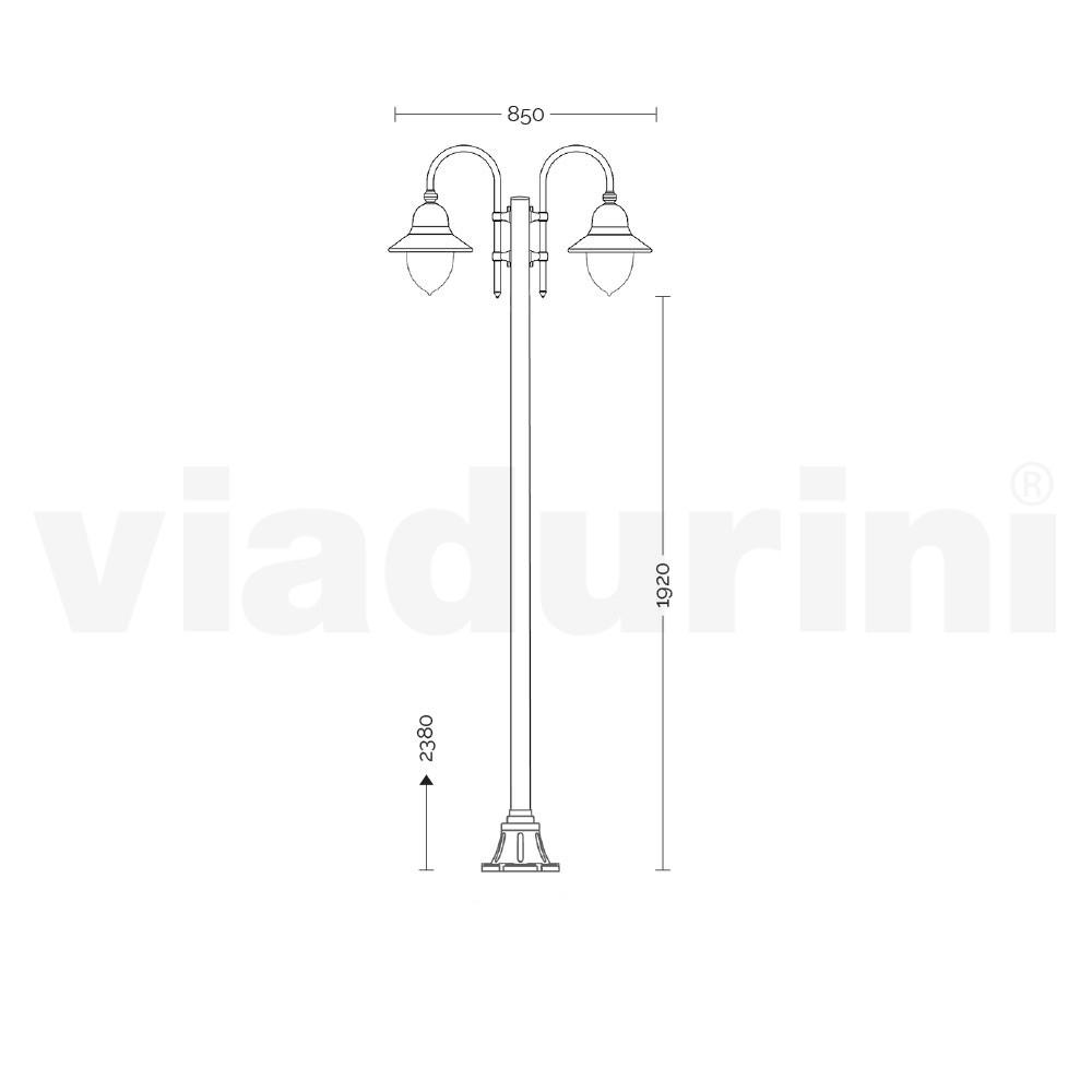 Lantaarnpaal in vintage stijl van aluminium en polycarbonaat Made in Italy.