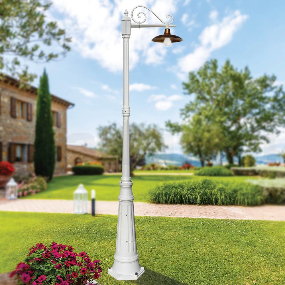 Tuinlamp in vintage stijl in aluminium en messing Made in Italy.