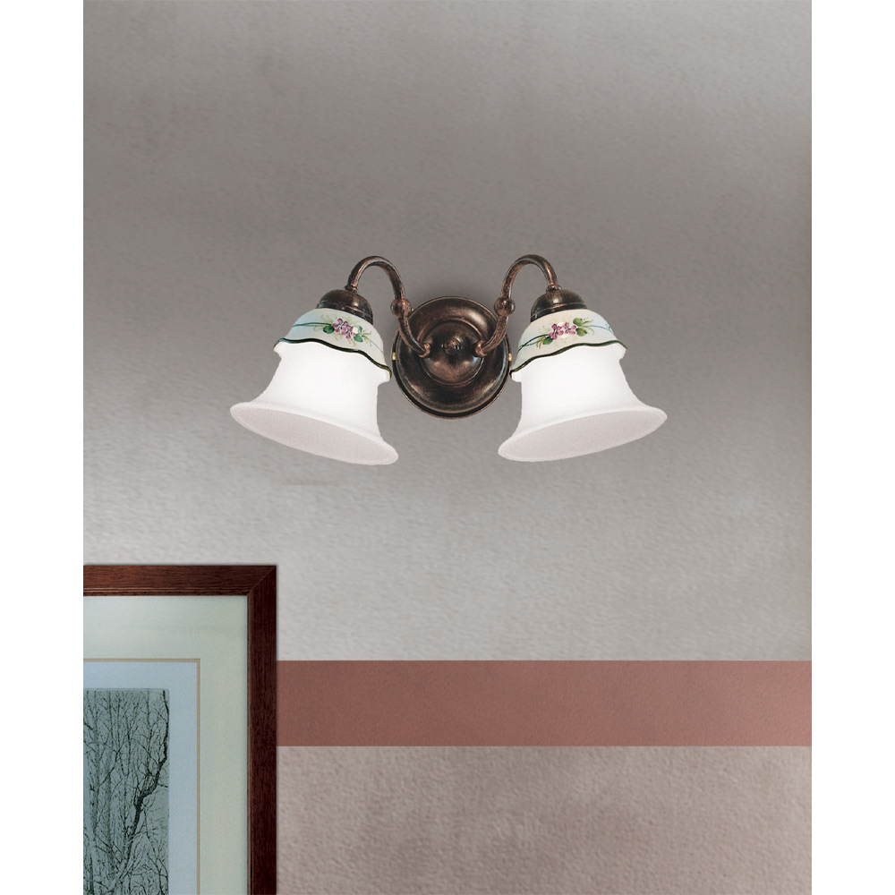 Wandlamp van ijzer, met de hand gedecoreerd keramiek en met zuur geëtst glas gemaakt in Italië door Ferroluce.