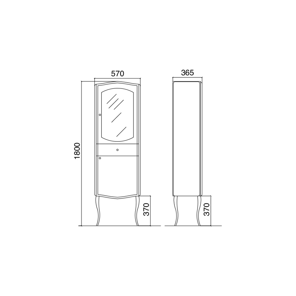 Afmetingen: lengte 57 cm x hoogte 180 cm x diepte 36,5 cm