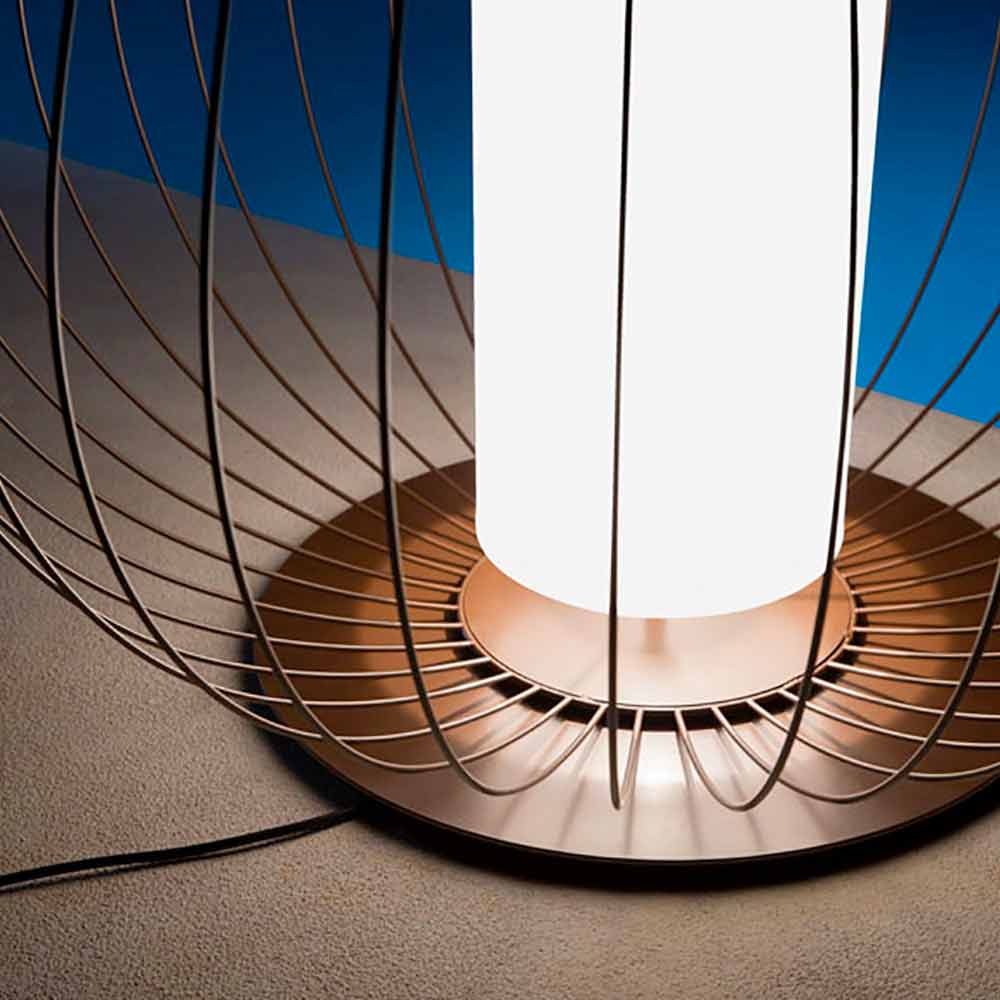 Deze originele en unieke tafellamp heeft een ontwerp geïnspireerd op lantaarns die in de lucht vliegen, waarbij de structuur en de geest opnieuw worden voorgesteld dankzij de dunne lijnen die de lucht trotseren, gemaakt van metaaldraad, voor een minimale aanvulling met een sterk karakter.