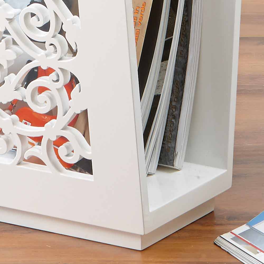 Tijdschriftenrek in gevormd wit hout, grind, duifgrijs, zand, modern en elegant vloerontwerp gemaakt in Italië.