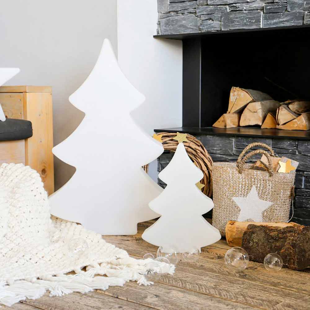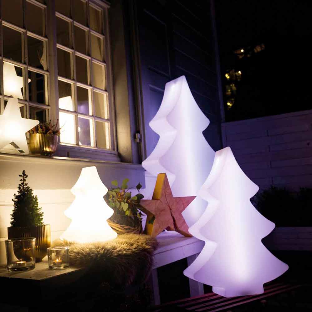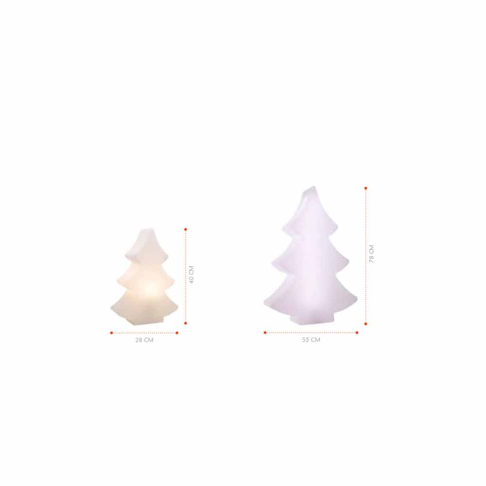 Deze tafel- of vloerlamp voor binnen of buiten kenmerkt zich door zijn boeiende design in de vorm van een dennenboom, verkrijgbaar in drie maten, als symbool van Kerstmis, voor een gastvrije en feestelijke sfeer.