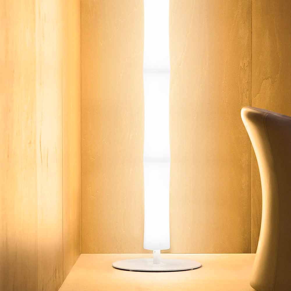 Staande lamp gemaakt in Italië met opaal witte polyethyleen diffusor en verchroomde metalen details compleet met geïntegreerde LED, dimmer (pedaal of app), dimbare elektronische voeding en 200 cm transparante kabel. Een verlichtingsidee dat tot doel heeft ruimtes te optimaliseren door een product aan te bieden dat in staat is om te reageren op de meest uiteenlopende behoeften voor zowel huishoudelijke als contractruimtes, altijd zorgend voor een zeer hoge standaard van lichtkwaliteit , evenals een grote gebruiksflexibiliteit en een sterke scenografische persoonlijkheid . Dankzij de innovatieve en functionele technologie van de LED-bron kan de lichtintensiteitsvariator ook gelijkmatig over de hele lampenkap worden verlicht, wat een prachtige sfeer creëert en tegelijkertijd zorgt voor een optimale verlichting.