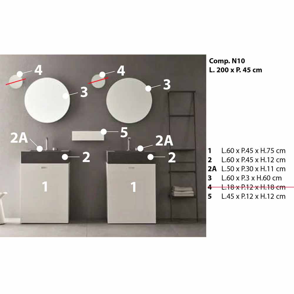 Samenstelling badkamermeubels met een modern design met dubbele zuil van wastafels gemaakt in Italië.
