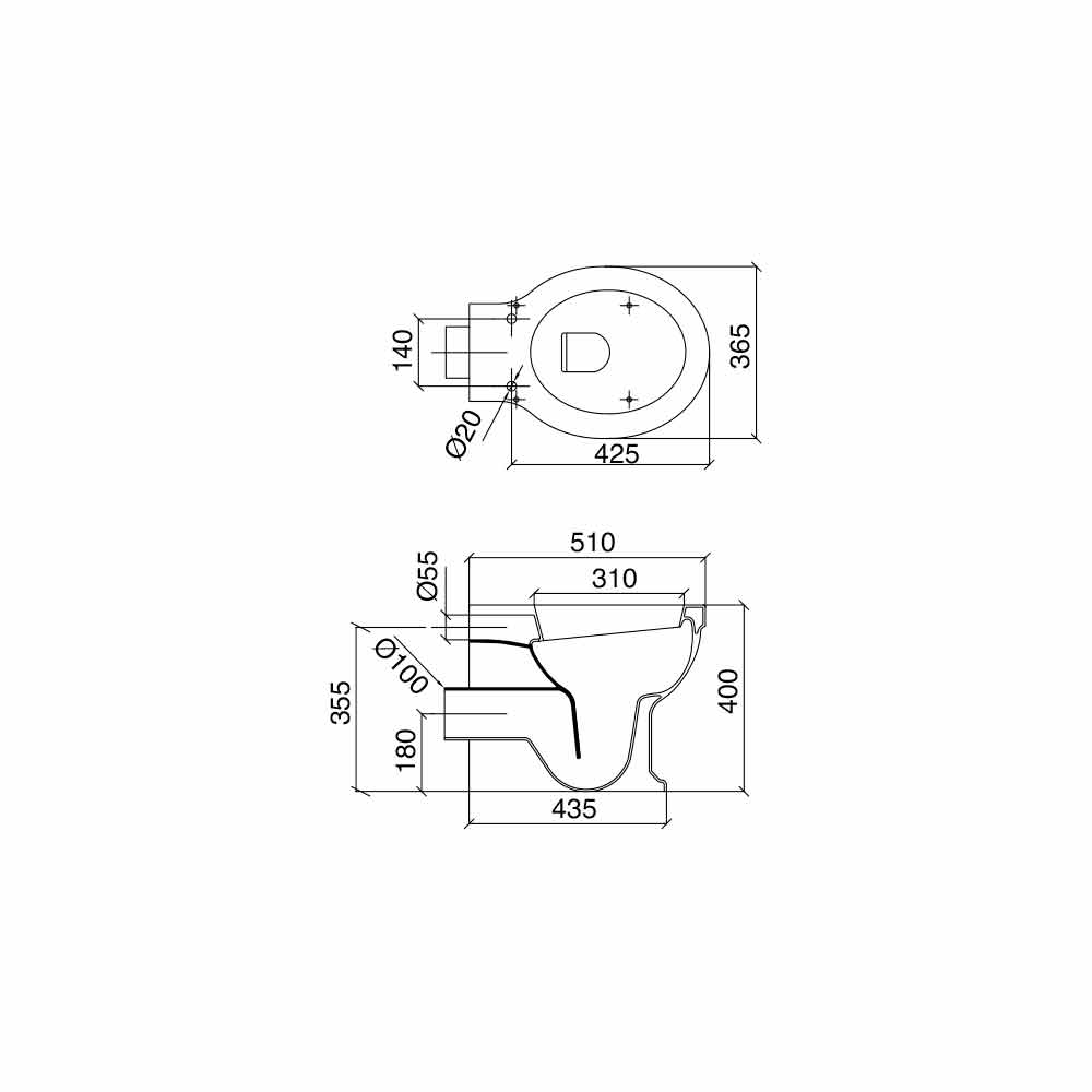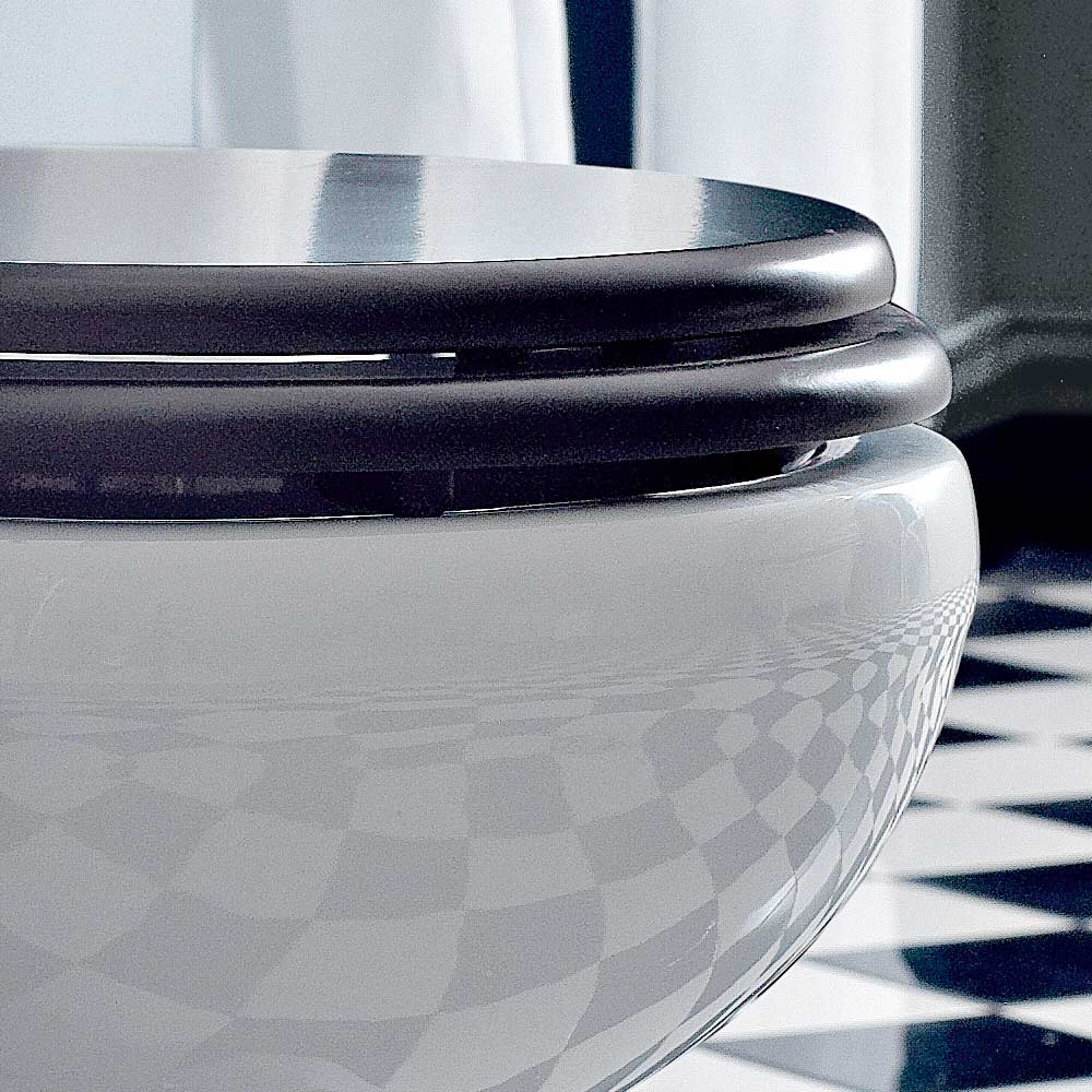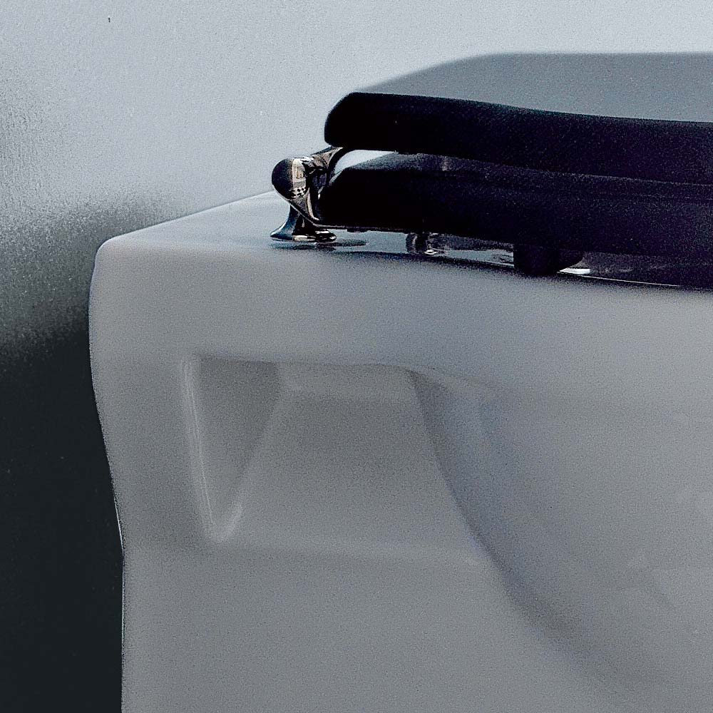 keramiek, met een matte zwarte stoel en nikkel scharnieren.