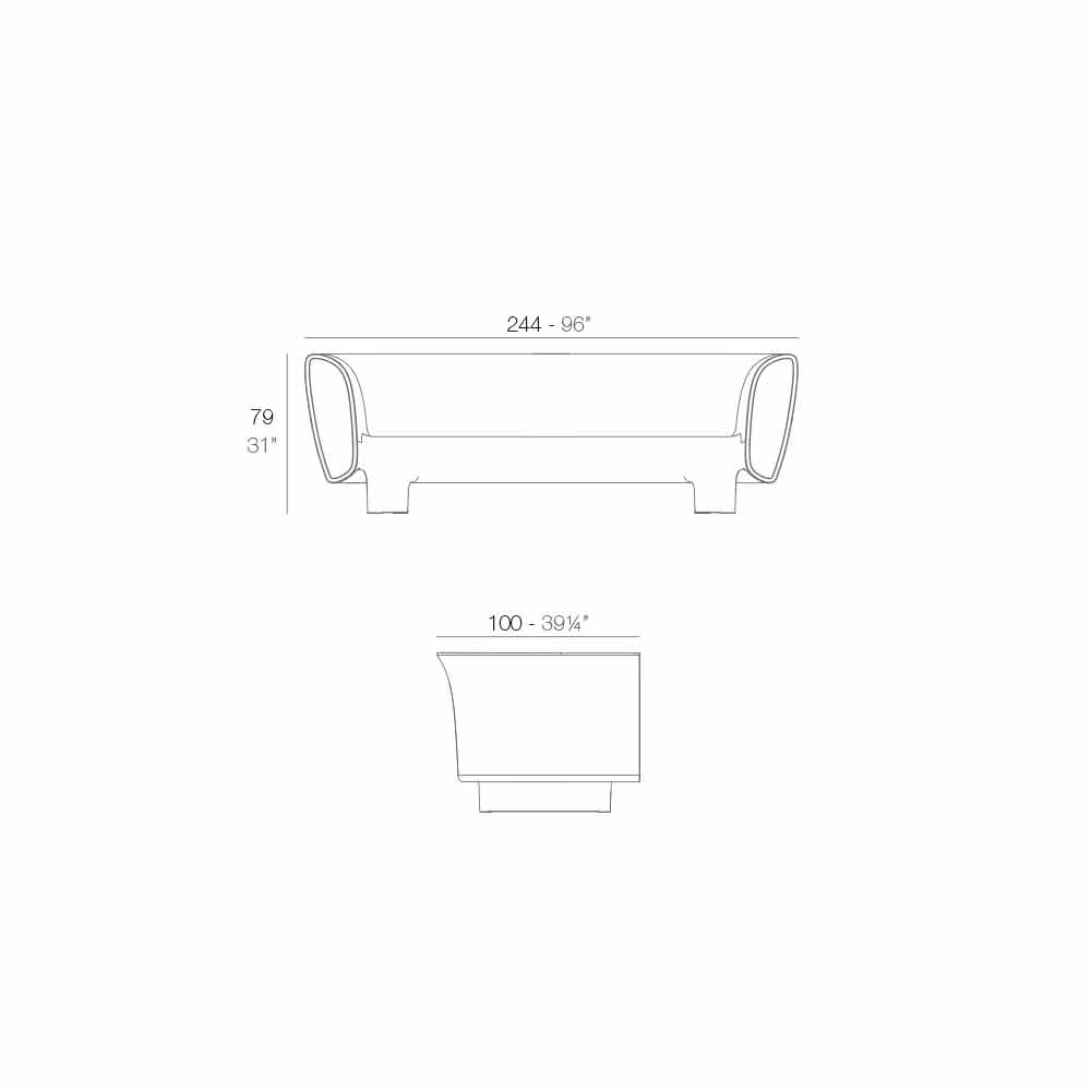 Sofa gemaakt van polyethyleenhars door een dubbelwandige rotatiematrijs; zwart gelakt.