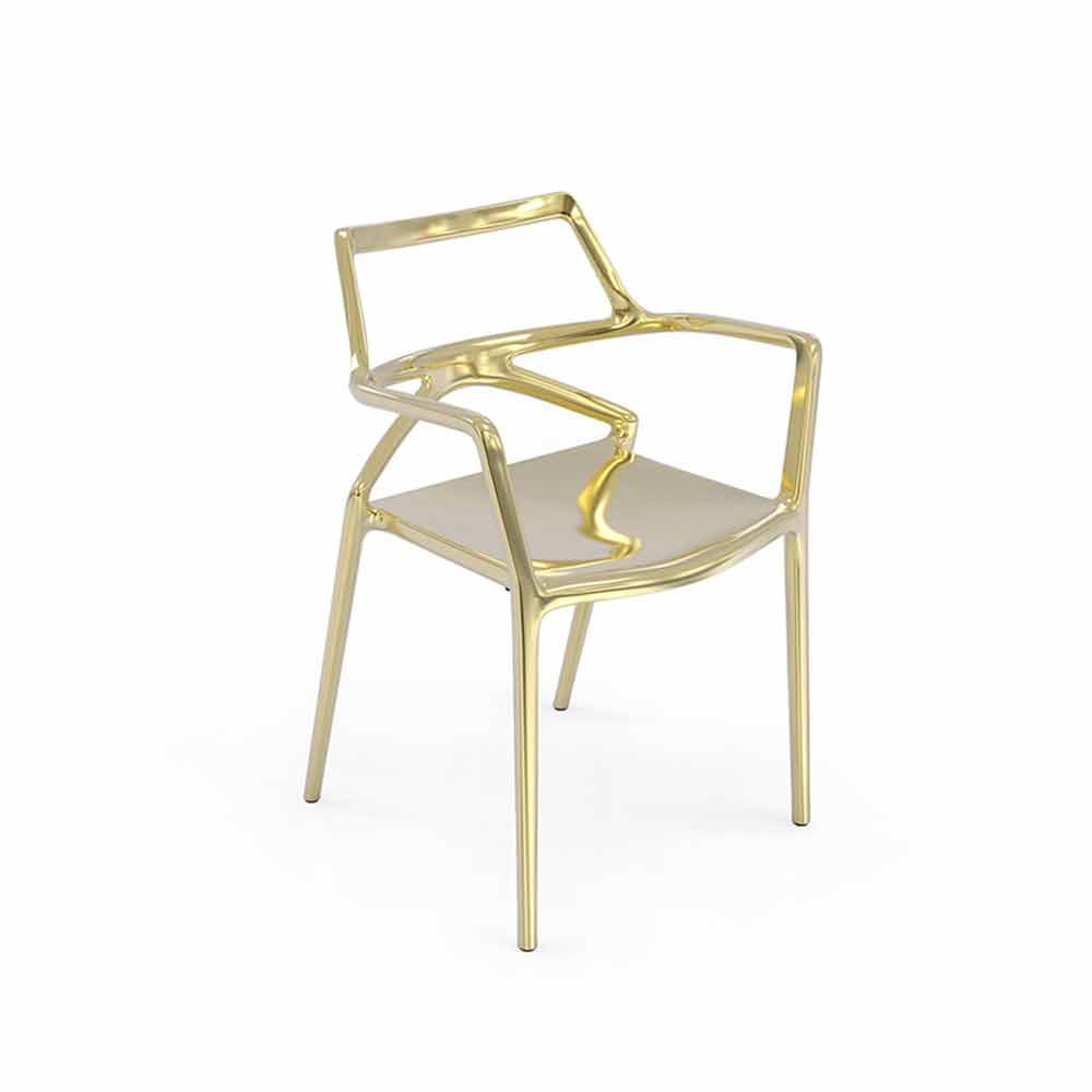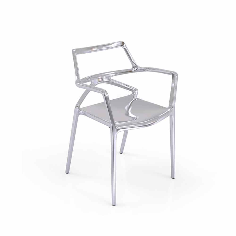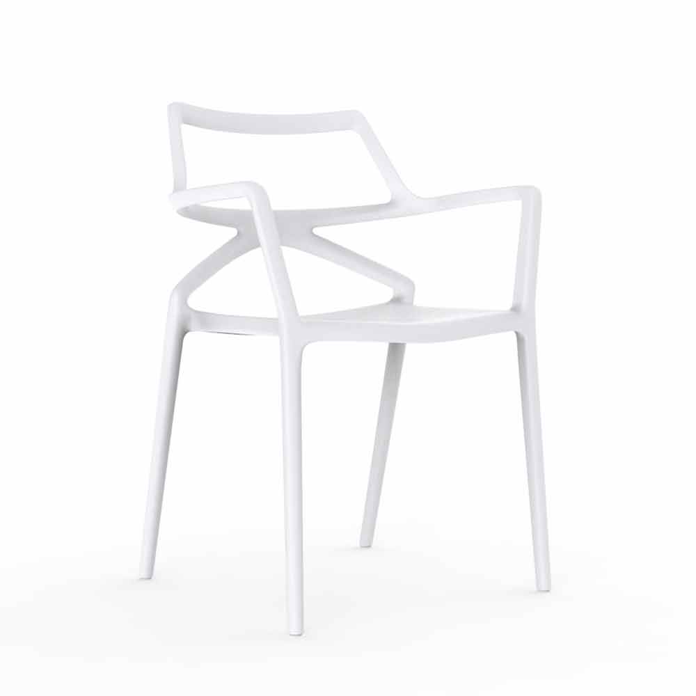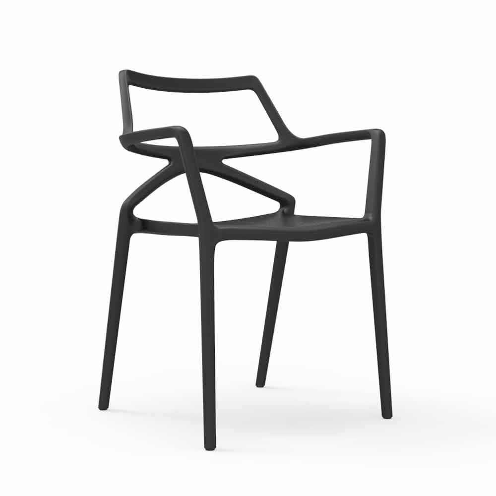 Stoel met armleuningen Delta by Vondom van polypropyleen spuitgegoten in luchtgegoten gas en versterkt met glasvezel. Stapelbaar.