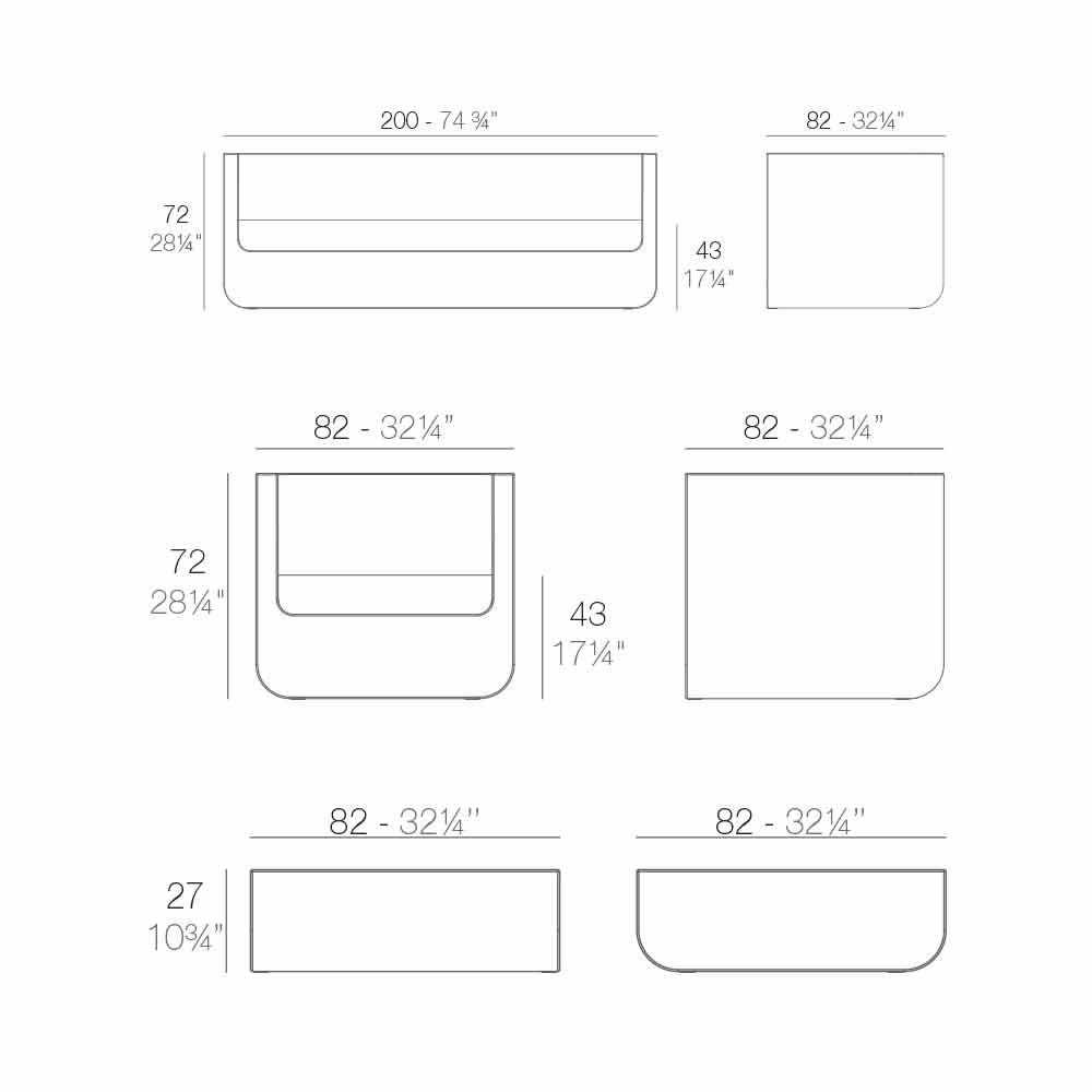 - 1 sofa L200 x P82 x H72 cm, inclusief witte kussens;